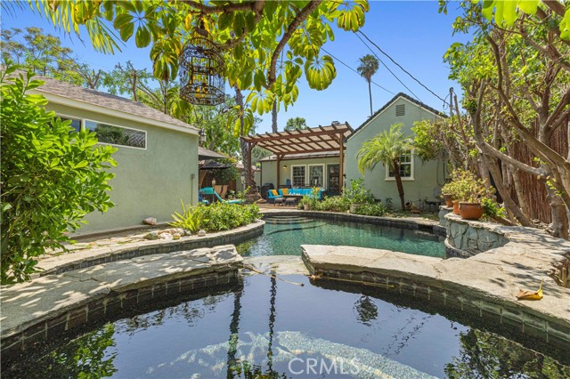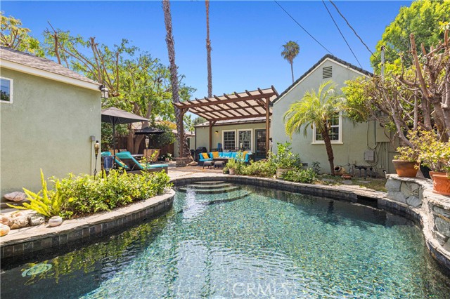 Fully furnished charming 2-Bedroom English Cottage and Backyard Oasis located in the heart of Prime Studio City. Located in the heart of Studio City, this beautifully maintained 1940s English cottage offers timeless character with modern upgrades. Surrounded by mature landscaping including orange, palm, and avocado trees, the home sits on a quiet residential street with easy access to major studios, top-rated restaurants, shopping, and public transportation. The property features a newly remodeled rustic-style kitchen and bathrooms, original hardwood floors, and central air and heat. The spacious layout includes two bedrooms, multiple living areas, and a functional floor plan ideal for comfortable everyday living. The home comes fully furnished with curated antiques and original vintage artwork, creating a warm and inspiring environment. The layout is designed for comfort and ease, whether you're working from home, entertaining, or simply enjoying the serene outdoor setting. Features include: Newly remodeled rustic kitchen and bathrooms with modern appliances, natural-style pool and spa surrounded by lush landscaping, spacious patio with BBQ and firepit perfect for relaxing or entertaining, baby grand piano, fireplace, and hardwood floors throughout, central air & heat, washer/dryer, dishwasher, and all kitchen essentials, HDTVs in every room and high-speed WiFi. Located in one of the most sought out neighborhoods conveniently located a few minutes away from Ventura Blvd and its fine dining.Interested in this Listing?