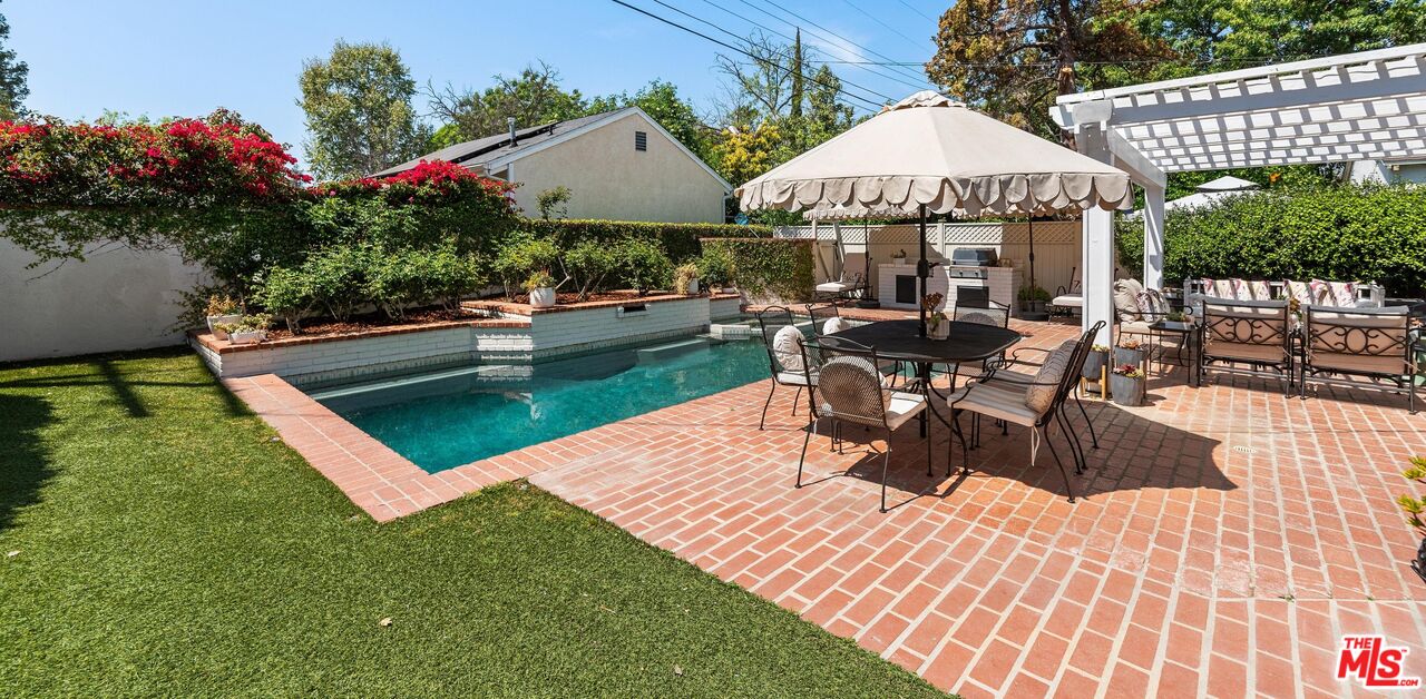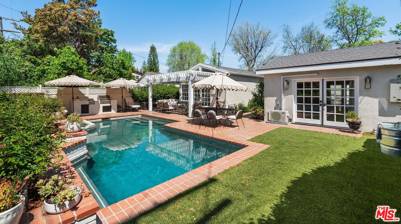 Welcome to 4507 Van Noord where timeless elegance meets the vibrant energy of Studio City.Perfectly situated in the very heart of one of LA's most coveted neighborhoods, this exquisitely renovated 4-bedroom, 3-bathroom single-level residence blends refined design with everyday comfort. Tucked away on a peaceful, tree-lined street, you're just moments from the iconic Sportsmen's Lodge, top-tier dining, trendy boutiques, and everything Ventura Boulevard has to offer.Step inside to discover a sun-soaked open floor plan, where oak floors, soaring vaulted ceilings, and custom cabinetry set a tone of warm sophistication. The formal dining area is ideal for entertaining, while the chef's kitchen is a true showstopper featuring marble countertops, a chic tile backsplash, high-end stainless steel appliances, and handcrafted cabinetry that effortlessly merges style with function.The serene primary suite offers a peaceful escape with vaulted ceilings, a dramatic shiplap accent wall, a spacious walk-in closet, and a spa-like ensuite bath complete with soaking tub, dual marble vanities, and designer finishes. Two additional bedrooms and a beautifully appointed bathroom are thoughtfully positioned, offering comfort and privacy.A detached guest house adds versatility ideal as a fourth bedroom, private office, or luxe guest retreat. Outside, the backyard transforms into a private resort. Lounge by the sparkling pool and spa, entertain at the built-in BBQ, or relax under the pergola. With low-maintenance turf and an expansive brick patio, this outdoor space is both stunning and practical.Experience the best of Studio City living modern luxury, ultimate convenience, and a location that truly can't be beat.Interested in this Listing?