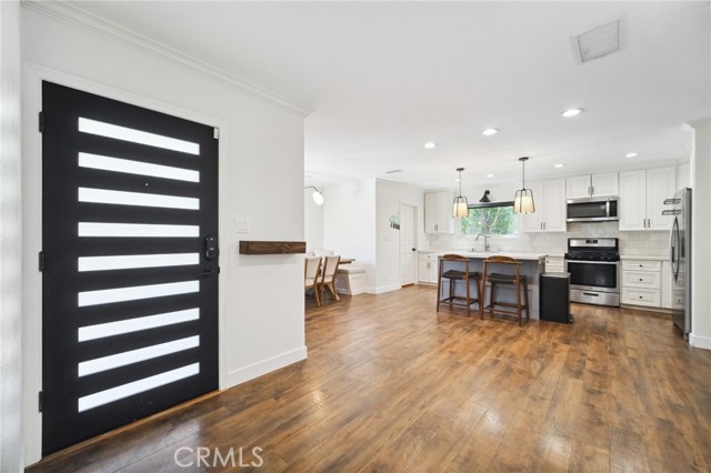 Chic and turnkey, this stylish single-story home in prime Tarzana South of Victory Blvd offers exceptional space, quality, and comfort. The open-concept floor plan includes a sun-filled living room addition, giving this home more interior space than many neighboring properties. The renovated kitchen features quartz countertops, stainless steel appliances, custom cabinetry, a center island with bar seating, and a built-in dining nook perfect for casual meals. Enjoy seamless indoor-outdoor living with French doors that lead to a beautifully landscaped backyard, complete with a 10x10 wooden gazebo (wired for electric), cement pavers, a side grilling area, and mature roses and trees. The spacious primary suite includes decorative wainscoting and a fully renovated bathroom. All bedrooms feature built-in closets, and the updated half bath offers modern convenience for guests. Additional highlights include: new windows and screens, custom plantation shutters, a new front door, updated fencing with car and pedestrian gates, new copper plumbing and ABS drainage pipes, central A/C, dual pane windows, new interior paint and flooring, and earthquake retrofitting with foundation reinforcement. Attached 2-car garage and a large driveway offer ample parking. Ideally located near a beautiful park, shops, dining, and freeway access.Interested in this Listing?