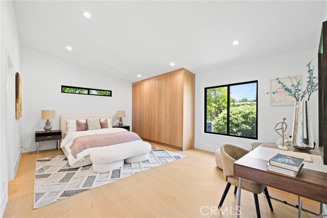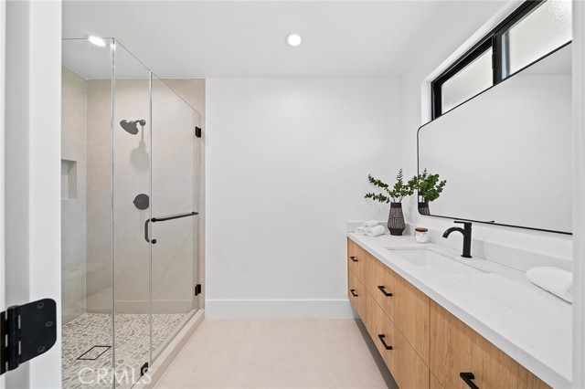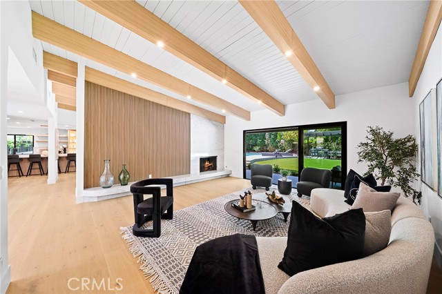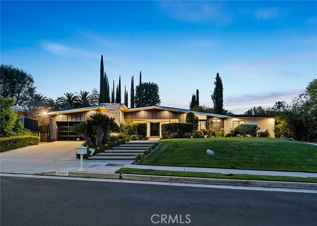 Welcome to this exquisite South of the Blvd Tarzana estate, a true masterpiece of modern luxury and design. This completely re-imagined single-story modern mid-century oasis offers an unparalleled living experience, combining high-end finishes, spacious interiors, and a resort-like outdoor haven. From the moment you step through the grand entry, you are greeted by a stunning formal living room with soaring ceilings and abundant natural light. The elegant formal dining room seamlessly connects to the magazine-worthy chef s kitchen, boasting top-tier Thermador appliances, custom cabinetry, and an expansive center island with stylish nook seating. The home s open-concept layout flows into the spacious family room, where a dual-sided fireplace and vaulted beamed ceilings create an inviting ambiance. Each of the generously sized bedrooms is en suite, providing the utmost comfort and privacy. The oversized master suite is a true sanctuary, featuring a massive walk-in closet and a spa-inspired bathroom with a soaking tub, dual vanities, and a walk-in shower. Outside, this property transforms into an entertainer s dream. A sparkling pool is complemented by a full basketball court, a built-in BBQ area with seating, a cozy fire pit, and an expansive grassy area all surrounded by lush, mature landscaping. Perfectly situated on a very quiet and exclusive street near prestigious parks, scenic trails, and renowned country and golf clubs, this residence is just moments away from the Valley s finest shopping, dining, and entertainment options.Interested in this Listing?
