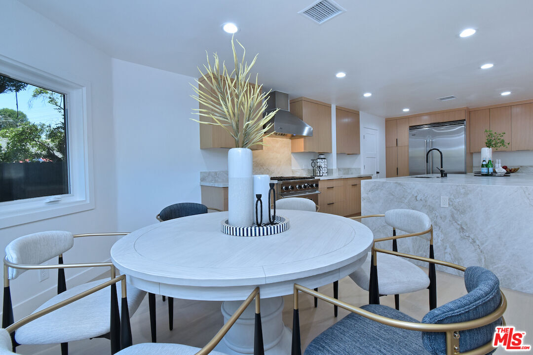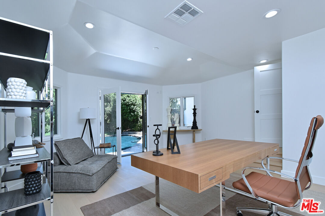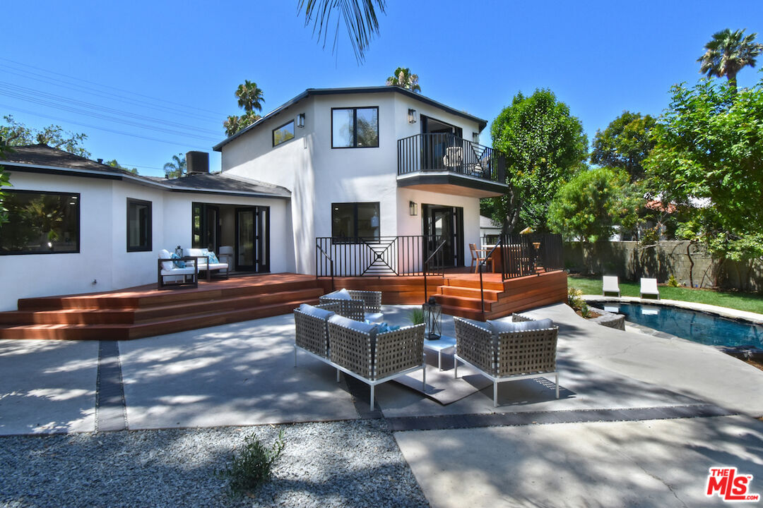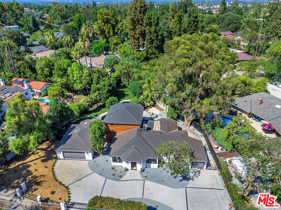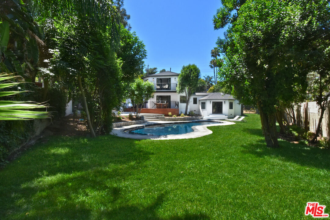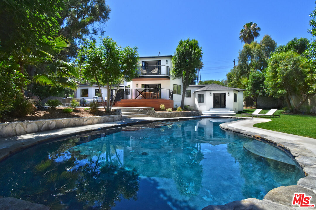 Welcome to this exceptional property ideally located South of the Boulevard. This reimagined home offers and unparalleled blend of modern elegance and charm. The spacious 3,741 s.f. floor plan offers seamless indoor/outdoor living with multiple living areas. The spacious living room features a fireplace, built in cabinets, wine refrigerator and French doors that opens to a new redwood deck overlooking the picturesque yard make it ideal for entertaining. The gourmet kitchen is a culinary dream with custom cabinets, Viking appliances, huge island with Taj Mahal quartzite and informal/formal dining areas as well as outdoor seating area for al fresco dining. The lavish primary suite is the only room on the second floor. Highlights include two professionally designed walk in closets, a luxurious spa style bath with Carrara marble floors, dual vanity with custom cabinets, soaking tub and separate shower. You will love the private tree top balcony where you can enjoy the views . Three additional beautifully redesigned bedrooms. One is located on opposite site of the house making it ideal for an office or guest suite with a private patio and easy access to the pool. The other baths also feature Carrara marble floors, custom cabinets and high end fixtures. The expansive 17,217 s.f. yard embodies quintessential California living. The professionally landscaped yard features palms, mature trees - including orange and lemon trees throughout the verdant oasis. The grotto like sparkling pool is surrounded by multiple patios and decks offering plenty of room for relaxation. This lovely home features hardwood floors, new dual zoned HVAC, new roof, new windows, two separate garages and circular driveway with gated access for privacy/security. There are many more upgrades and features to this beautifully upgraded home. Surrounded by multi-million dollar estates. Quick and convenient access to shops, restaurants, schools and freeway. This home is not to be missed.Interested in this Listing?