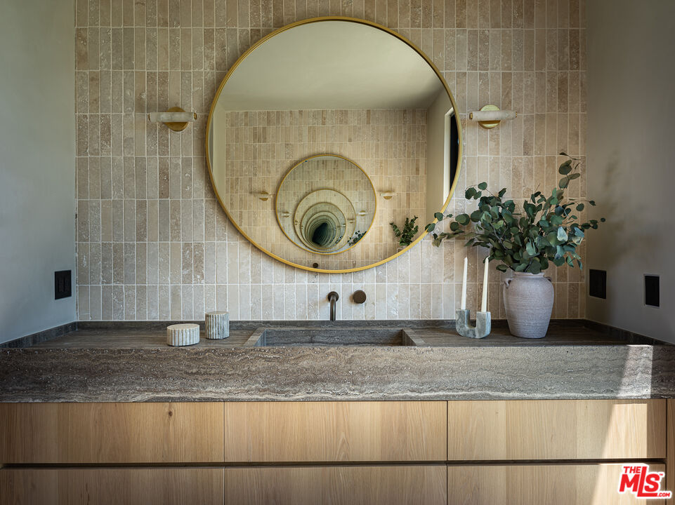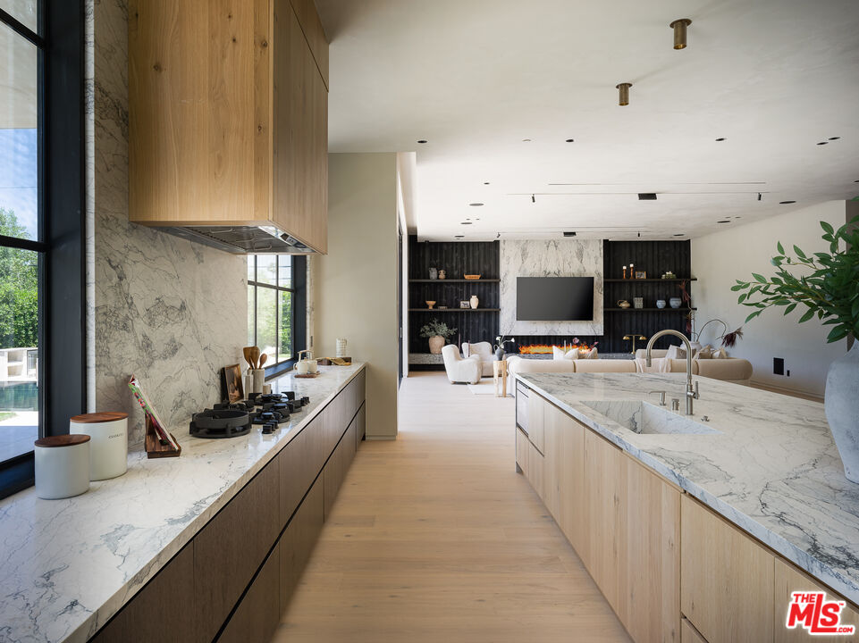 Tucked away in a highly desired, South of the Blvd Tarzana neighborhood, lies this exceptional custom estate offering the pinnacle of luxury, serenity and bespoke finishes. Privately gated and down a long, olive tree lined driveway, this home fells like it is in a gated community all on its own.This home features 6 spacious bedrooms, 5.5 beautifully appointed bathrooms, a private theater, 3-car garage, sports court, and an array of outdoor amenities including an infinity pool, spa, firepits, and a fully-equipped outdoor kitchen.The residence comes equipped with six generously sized rooms, each offering both style and function. Four of the bedrooms, including the primary, are situated upstairs for maximum privacy, while two are conveniently located on the main floor, ideal for a guest suite and an office.The primary suite is the ultimate escape, boasting expansive space, floating fireplace, two private balconies, and sweeping views of the lush surroundings. The spa-inspired master bathroom offers a steam room, deep soaking tub, multiple shower heads, and dual toilets. The walk-in closet is truly remarkablelarger than most bedrooms and has been tailored to fit the expectations of a true fashion connoisseur.The open-concept living spaces flow seamlessly between the living, kitchen, and dining areas, creating an inviting atmosphere perfect for family gatherings or entertaining. The chef's kitchen is a showstopper, featuring top-of-the-line appliances, custom oak cabinetry, stone countertops and a secondary "dirty" kitchen to help keep things tidy during meal preparation.Step outside floor to ceiling pocket sliders to your very own private oasis, where the infinity-edge pool with spa and multiple firepit areas create a captivating ambiance for both relaxation or entertainment. A covered patio and outdoor kitchen ensures year-round enjoyment, and the sports court is perfect for those with an active lifestyle. For movie lovers, the state-of-the-art theater room provides an immersive viewing experience, while Control4 smart home technology makes managing lighting, security, and multimedia effortless. Parking is plentiful with a 3-car garage and a spacious private driveway to accommodate both residents and guests alike. This extraordinary estate offers the ideal balance of modern luxury, convenience, and unparalleled privacy, making it the ultimate sanctuary fit for the most discerning individuals.Interested in this Listing?