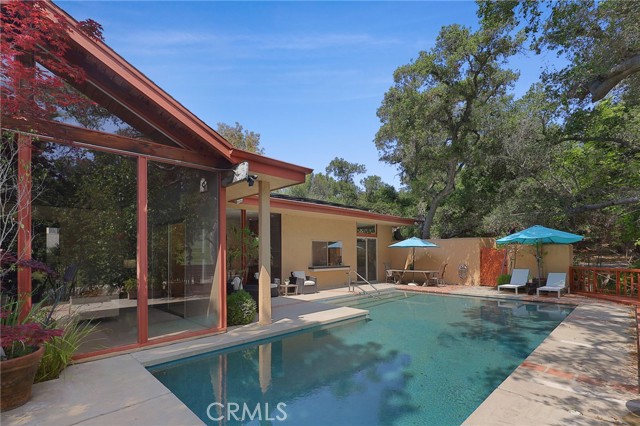 Architectural Mid Century Sanctuary located on the Braemar golf course provides the ultimate private oasis behind gates. Seller will entertain financing.! Towering trees envelop you and nature inspires you in this custom built single story retreat. Enter through an enclosed courtyard featuring a captivating water fountain. All major rooms include Wall to wall glass doors and windows throughout emphasizing the tranquility and connection to nature of this location. Sandblasted high beamed ceilings seamlessly flows from exterior to interior. Updated kitchen with quartz counter tops and upgraded appliances. Lots of cabinets for storage. Views of lush garden, pool and golf course that inspires peace and reflection. Family Room features built in library, cabinets and wet bar. The LR, FR and Primary Bedroom each feature their own fireplaces. Dual areas divide primary bathroom for a more functional design. Redwood deck extends backyard providing a picturesque view of the golf course great for entertaining or enjoying the natural surroundings. Additionally, possible room for an ADU. Salt water, PebbleTec pool . Solar panels recently installed! Hiking trails nearby. Close to restaurants, shopping and freeway. This masterpiece estate with its harmonious design, luxurious features and connection to nature is a one of a kind coveted retreat. Seller will consider carrying a loan at a lower rate than todays rates.!!!Interested in this Listing?