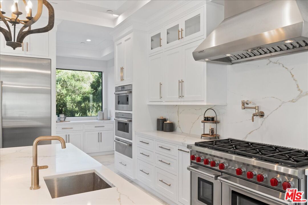 Brand-New Custom Estate | Tarzana's Crown Jewel Experience the pinnacle of luxury living in this newly constructed custom estate, perfectly situated in one of Tarzana's most coveted enclaves. Privately set behind a gated driveway off Vanalden Ave, this 5-bedroom, 8-bath architectural masterpiece seamlessly blends timeless elegance with cutting-edge design. Step inside to soaring coffered ceilings, natural light streaming through oversized windows, and a fluid floor plan designed for both grand entertaining and intimate moments. At the heart of the home lies a stunning glass-enclosed wine cellar, anchoring the formal dining and living rooms with dramatic flair. The living room's stately fireplace opens to a tranquil courtyard, while the expansive family room connects to a breakfast nook and chef's dream kitchen outfitted with Sub-Zero and Wolf appliances, a statement quartz island, and panoramic views of the resort-style backyard. Disappearing walls of glass create effortless indoor/outdoor flow, leading to a backyard paradise with a sparkling pool, cascading waterfalls, spa, fire pit, and a fully equipped BBQ station with its own dedicated bathroom. A spacious guest suite, powder room, and laundry room complete the main level. Upstairs, four additional en-suite bedrooms await, including a show-stopping primary suite with vaulted ceilings, fireplace, and tree-framed views. The spa-like primary bath features a soaking tub with peaceful vistas, a generous walk-in closet, and dual balconies overlooking the valley. A light-filled library/study area adds a touch of functionality to the upper floor. Downstairs, indulge in a private media theater, gym/game room, and an additional bath perfect for work-from-home or guest privacy. The property includes a 3-car garage along with ample outdoor space for up to 12 additional vehicles, offering parking for 15+ cars and potential RV accessideal for entertaining on a grand scale. Currently nearing completion, this estate represents the finest in Southern California luxury detail, meticulously curated for comfort, beauty, and lifestyle.Interested in this Listing?