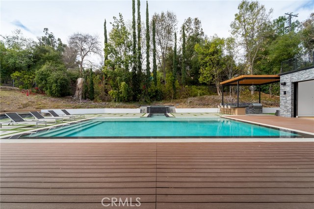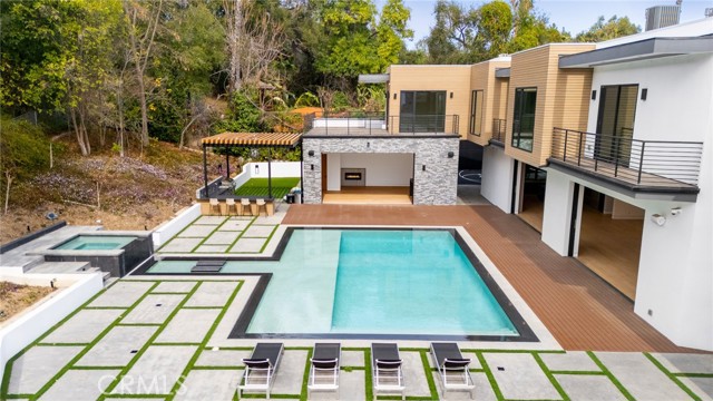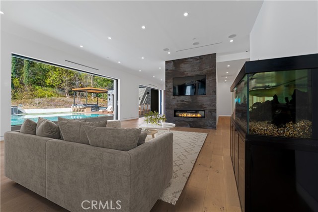 Welcome to your private sanctuary, nestled on a sprawling .68 acre wooded lot. Situated on a flag lot, this estate sits far from the street, ensuring unmatched privacy. A gated entrance and extended driveway lead to a spacious three car garage, with ample additional parking for guests. Step through the breathtaking glass entryway, where soaring 32-foot ceilings, a dramatic chandelier, and striking white oak floating stairs set the stage for this architectural masterpiece. Walls of glass and Fleetwood sliding doors seamlessly blend indoor and outdoor living, flooding the space with natural light and creating an entertainer s dream. The open concept layout is anchored by stunning oak floors and a sophisticated Italian designed kitchen, featuring a hidden oversized pantry and a wine fridge, perfectly positioned beside an elegant formal dining area. The lower level boasts two ensuite bedrooms, a private office, and a state-of-the-art theater, ensuring ultimate comfort and convenience. Upstairs, the primary suite is a true retreat, complete with a cozy fireplace, a custom walk-in closet, and a spa inspired bath. A private sitting area and relaxation patio offer a peaceful escape. Above the garage, a versatile space awaits, ideal for a gym, studio, or guest quarters, opening onto a spacious outdoor terrace. Step outside into an entertainer s paradise, featuring a zero edge saltwater pool and spa, a sleek cabana, a fully equipped pool house, and a basketball court. Multiple outdoor patios provide the perfect setting for dining and relaxation, while paid-for solar panels add a modern touch of efficiency. Experience the pinnacle of luxury living, where privacy, elegance, and resort style amenities come together in perfect harmony.Interested in this Listing?
