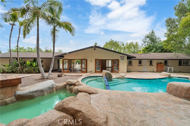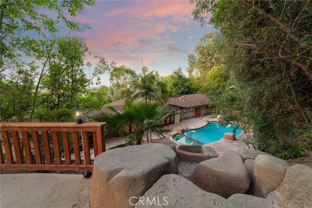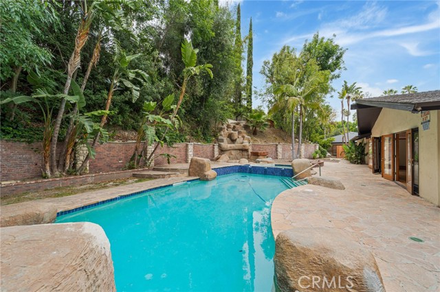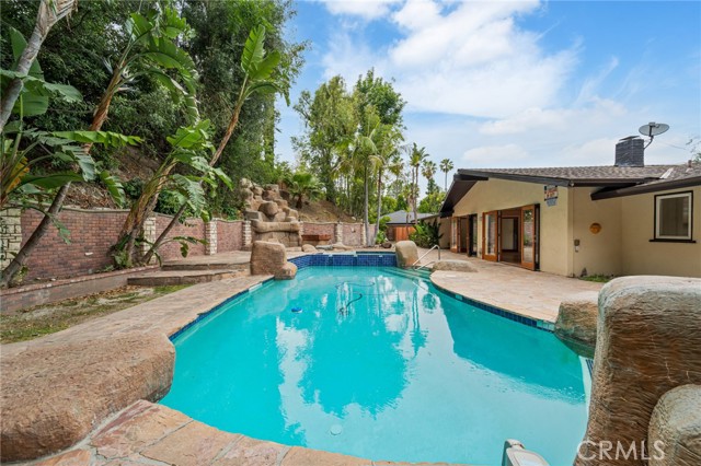 Tucked away in the hills of Tarzana on a quiet cul-de-sac, this charming single-story home is set behind private gates on a sprawling lot that spans over 18,000 sf. Inside, the open-concept layout features a spacious living room and formal dining area highlighted by vaulted wood-beam ceilings and walls of glass that flood the space with warm natural light. Adjacent lies a well-appointed kitchen outfitted with granite counters and stainless steel appliances. Double French doors lead out to a tranquil backyard retreat, where you ll find a refreshing pool/spa and gorgeous stone patio with an upper lounge area perfect for relaxing and soaking in the views. This home has four generously sized bedrooms and three updated bathrooms, including an expansive primary suite with a walk-in closet and ensuite bathroom, complete with a soaking tub, large shower and double vanity. Additional amenities include a dedicated laundry room, security cameras, a long gated driveway and oversized two-car garage. Located South of the Boulevard, this property is within a top-rated school district and just moments away from everything the Valley has to offer.Interested in this Listing?