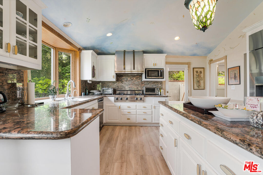 Welcome to this beautiful secluded and private gated residence, nestled in the trees above the street and at the end of the cul-de-sac. Up a gated driveway overlooking greenery there is plenty of space to park multiple cars. The house was recently updated and has a new roof as well as A/C among the many improvements. The first floor offers two spacious bedrooms with each having its own bathroom and plenty of storage space. The large open and bright kitchen offers Viking appliances, as well as custom painted high ceilings. There are multiple French doors for indoor outdoor entertaining. Upstairs offers a huge bedroom retreat with its own bathroom and an extra large balcony. Perfect house for nature lovers as it surrounded by lush greenery and birds chirping.Interested in this Listing?