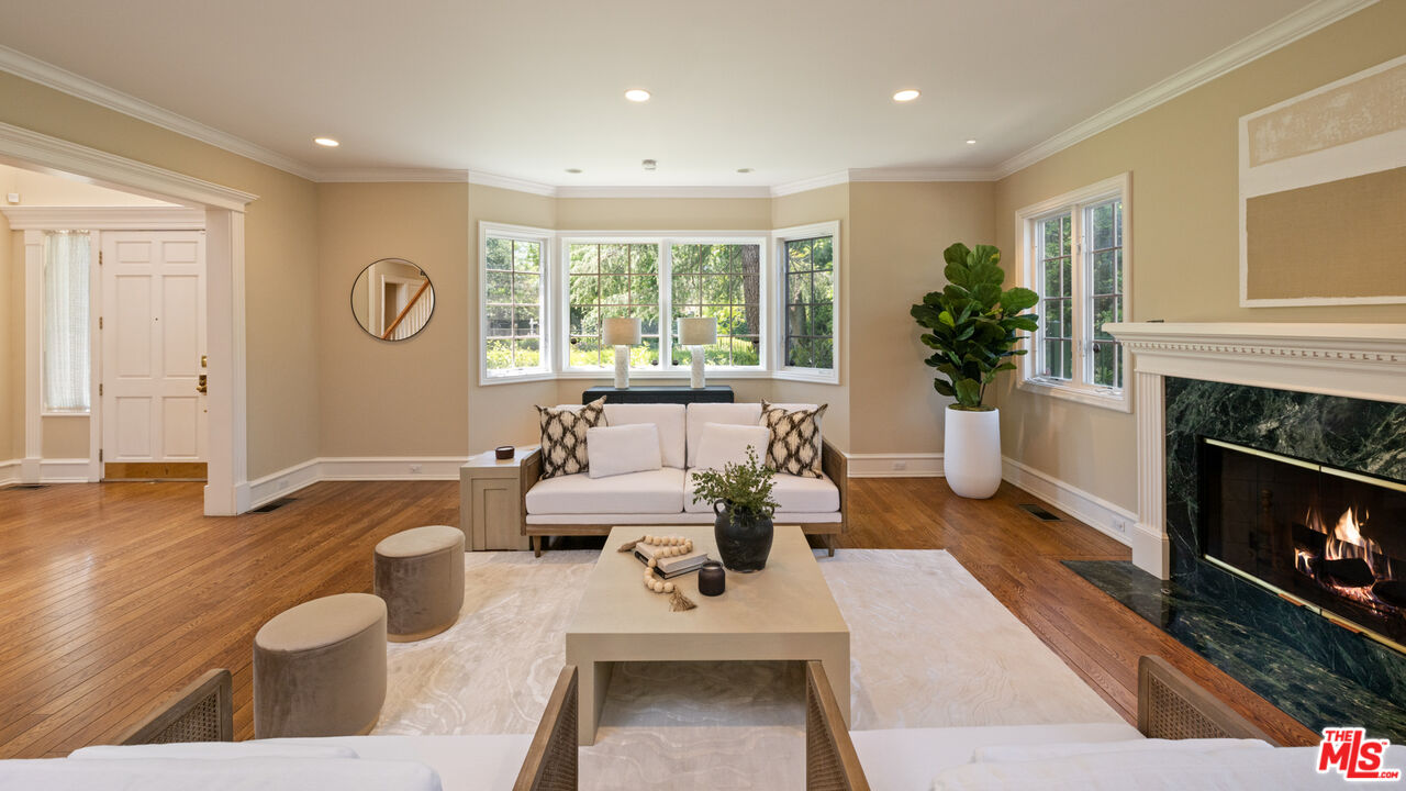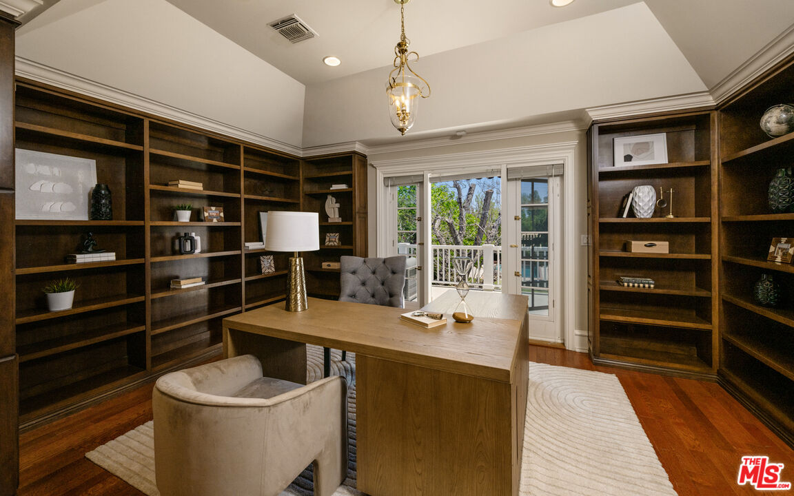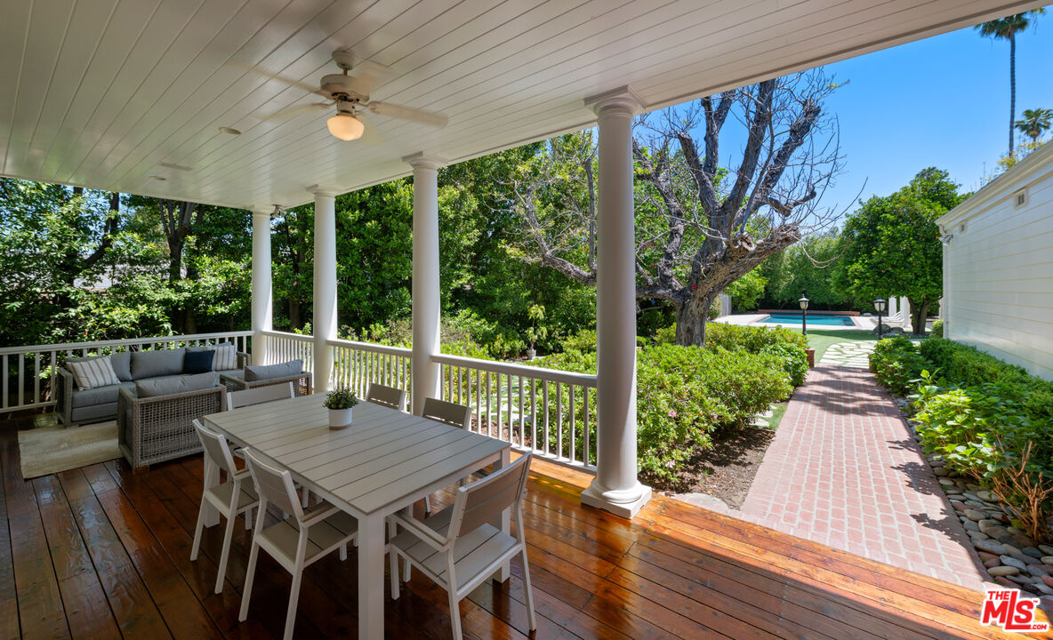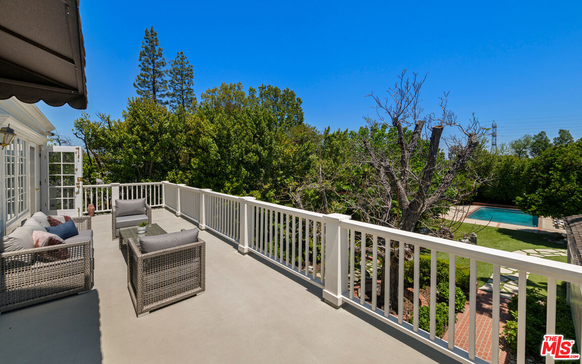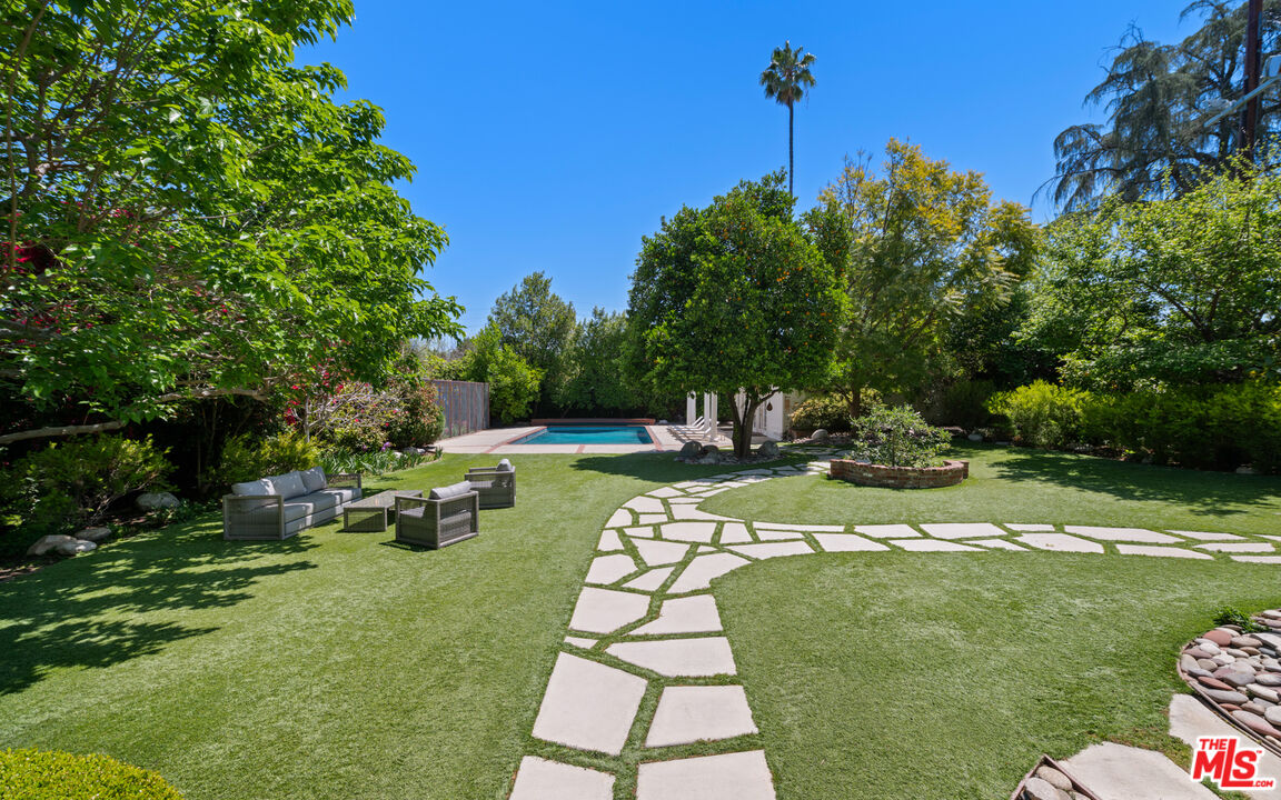 A rare entertainer's paradise in the heart of Tarzana. This gated 4500+sf Classic Georgian sits on an almost 1/2 acre flat lot S. of the boulevard offering both privacy and so much space that it's sure to become THE venue for every gathering. Step through the red front door into the grand foyer and immediately you'll notice the 10'ft ceilings throughout, meander through the formal living and dining rooms to the spacious family room leading to the covered porch, ideal for SoCal's indoor-outdoor lifestyle and casual outdoor parties. The inviting chef's kitchen offers tons of cabinet space, high-end appliances and a butler's pantry. Upstairs, the primary suite is a serene retreat with a spa-like en-suite bathroom and a large terrace overlooking the incredible backyard and gleaming pool. Two additional bedrooms each have en-suite bathrooms, and the study/library, also with terrace access, is an ideal home office or study space. The absolute showstopper is the lush, flat, park-like backyard with its fruit trees, ranging from pomegranate, avocado, apple, walnut and 7 types of citrus, and its sparkling pool and outdoor grilling area. House guests may decide to stay a while thanks to the approx. 400sf guest house that can double as a pool cabana. A beautifully maintained rose garden and an enclosed garden area for vegetables with raised beds complete the picture. Close to great schools and just off Ventura Blvd, this property has a 3-car garage and a full attic with 8' ft ceilings. Be ready to become the favorite home for birthdays, showers and weddings. You may even get a location scout knocking on your door!Interested in this Listing?