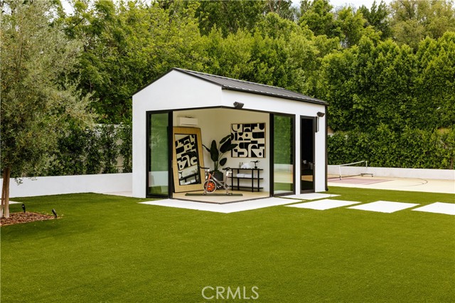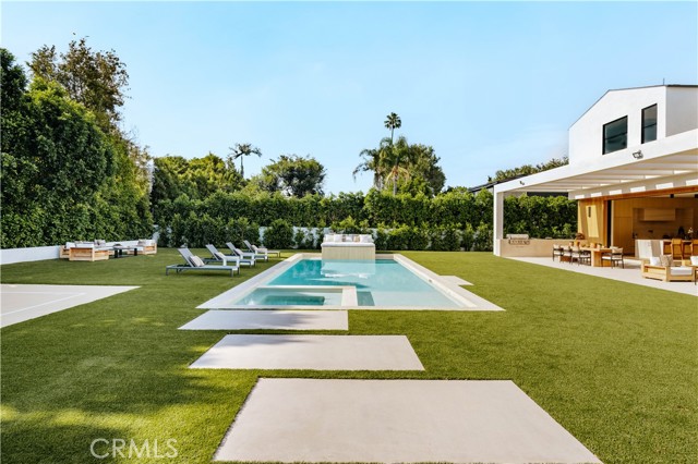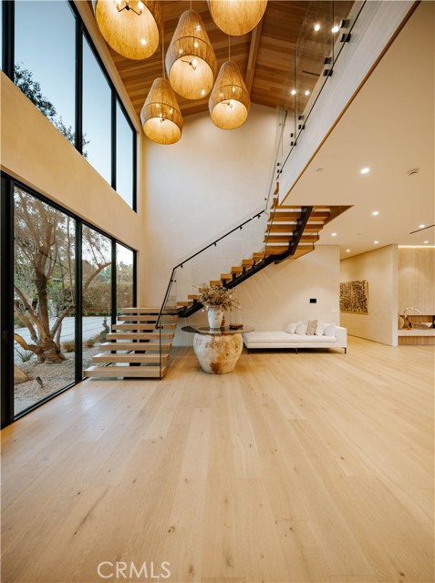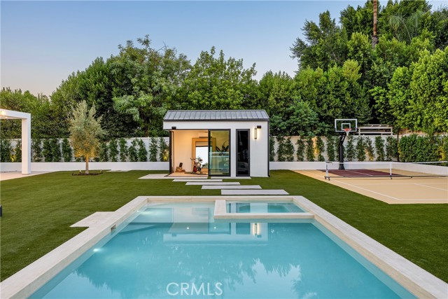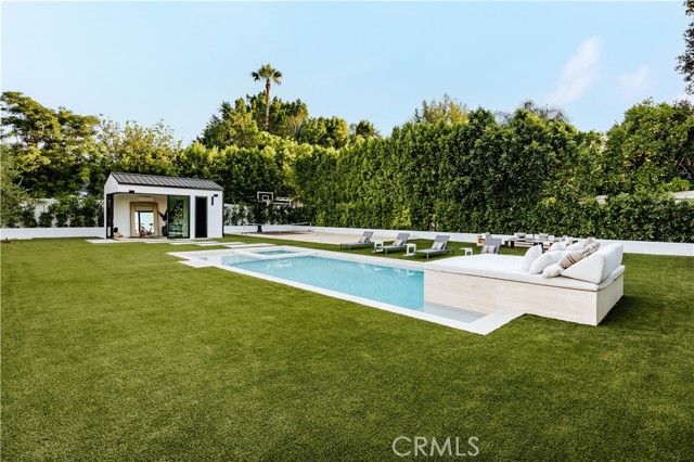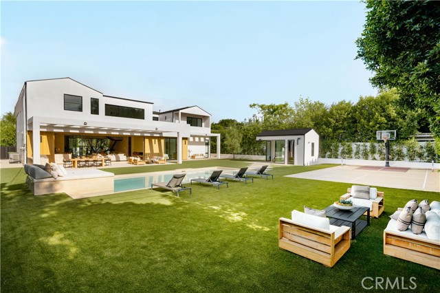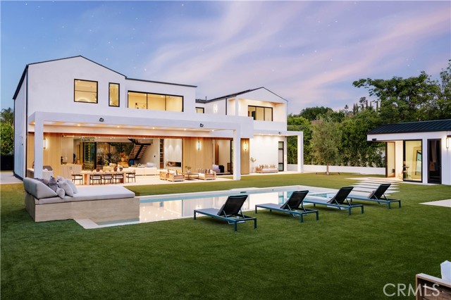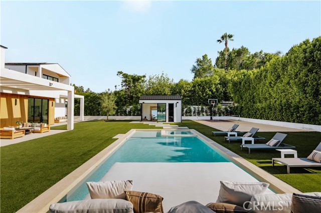 Set behind gates on a rare, over 18,000 sqft flat lot, this brand-new Organic Modern estate blends clean architectural lines with warm, natural materials for a sophisticated yet grounded living experience. A striking cedar wood faade is centered around a 125-year-old olive tree, leading to a dramatic glass entry and a two-story foyer with wide-plank European oak floors. The open floor plan flows effortlessly from a formal dining area with a built-in buffet into a chef s kitchen, featuring custom cabinetry, limestone countertops, Miele appliances, and a large walk-in pantry. A limestone island anchors the space, perfect for entertaining. The family room features a travertine fireplace and walls of pocketing glass doors that open to a resort-style yard with pool and spa all wrapped in natural travertine, tanning ledges, a built-in BBQ, sports court, and a cabana with full bath. The main level includes an ensuite guest room, a bold powder room, a velvet-wrapped media room with blackout drapes, and a glass-enclosed home office. Upstairs, the primary suite impresses with wood-beamed ceilings, travertine fireplace, private balcony, massive walk-in closet, and a spa bath with floor-to-ceiling travertine, soaking tub, dual vanities, and rain shower. Additional highlights include a 2-car garage, Control4 smart system, full home security, and organic, designer-selected finishes throughout. Ideally located minutes from Ventura Blvd, this estate offers a rare blend of modern luxury and natural serenity.Interested in this Listing?
