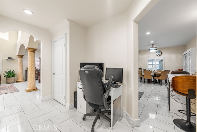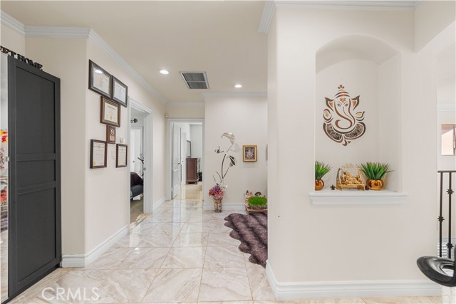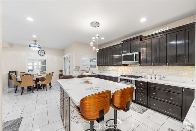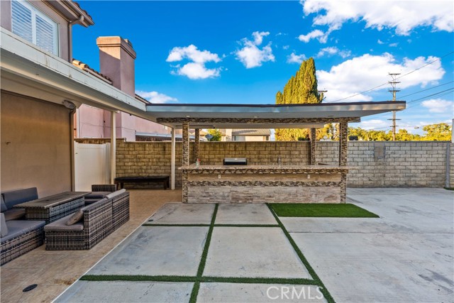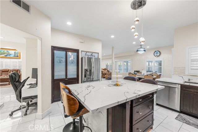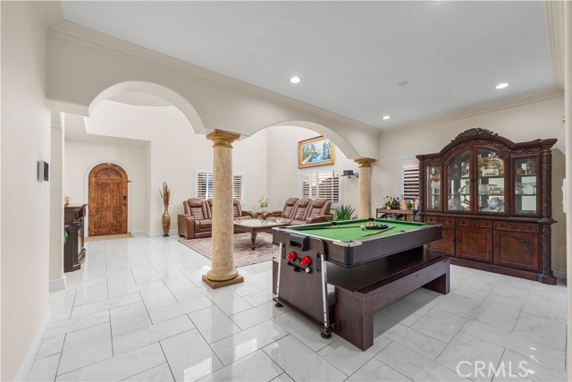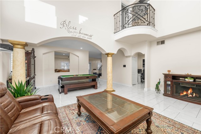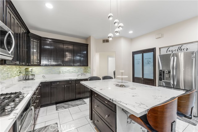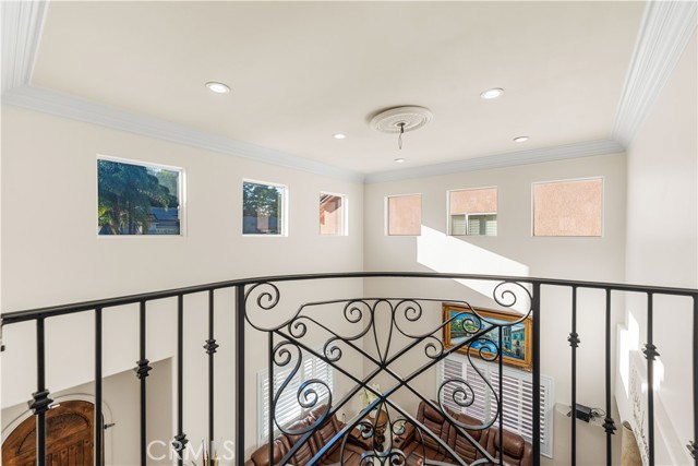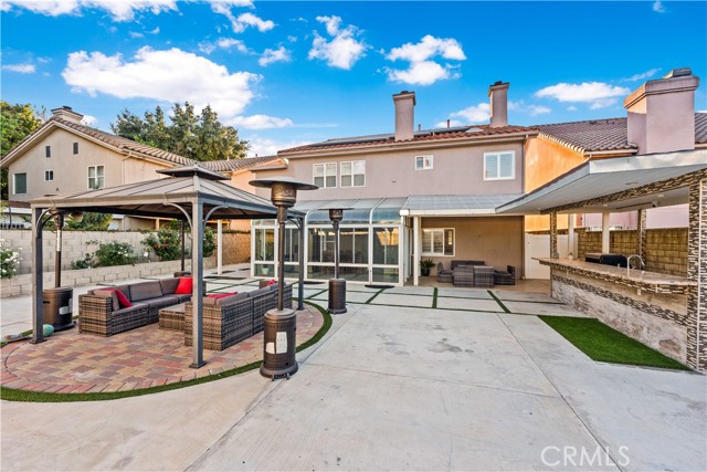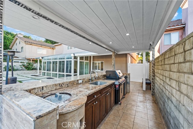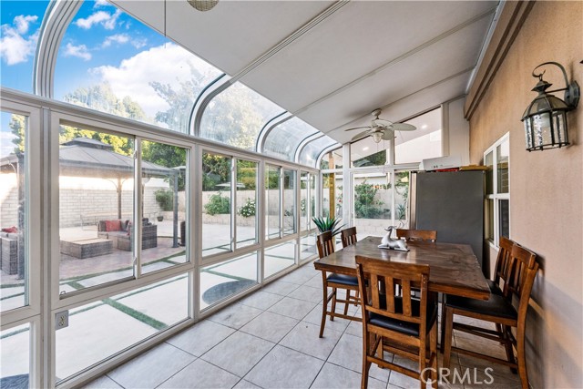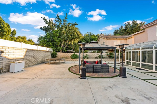 This Mediterranean-style home, located on a quiet Tarzana cul-de-sac, offers 5 bedrooms, 3.5 bathrooms, and an open floor plan with cathedral ceilings and large windows. The dining area features a soaring cathedral ceiling and a decorative balcony perched on the second floor, adding a touch of elegance. A permitted 200+ sq. ft. solarium, accessible from the living room, brings in abundant natural light. The principal bedroom includes a cozy second fireplace, while the primary bath is equipped with double sinks, quartz countertops, a Jacuzzi tub, and a marble-finished shower. The landscaped backyard offers a gazebo, a new patio with ambient lighting, a barbecue station, and a full outdoor kitchen with marble countertops. Additional upgrades include a SOLAR SYSTEM FULLY PAID, charger, water filtration, new AC units, 8 security cameras, and a Vivint alarm system. The home also features a custom wood entry door, a tiled staircase, and a covered patio. Conveniently located near Ventura Blvd and the 101 freewayInterested in this Listing?