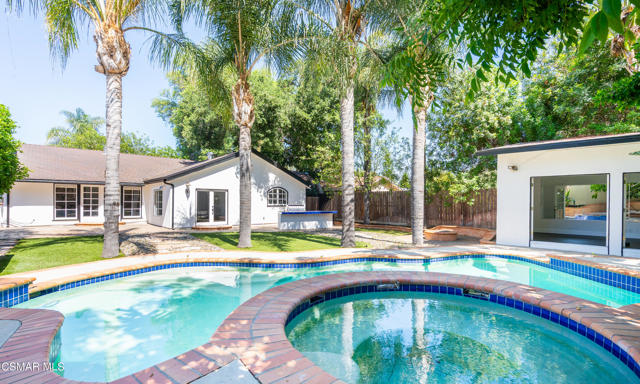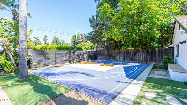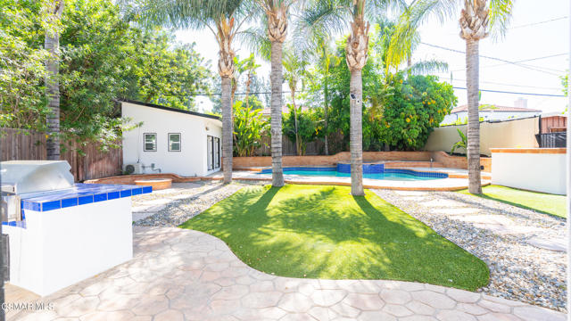 Welcome to your private, gated Tarzana estate--thoughtfully updated, freshly painted, and offering over 3,000 square feet of luxury living. A stamped concrete driveway, brand-new front fence, and electric gate create a grand entrance to this one-of-a-kind property, complete with a front yard basketball court and a true entertainer's backyard.Perfectly designed for both relaxation and entertaining, the expansive outdoor space features a sparkling pool and spa, built-in BBQ, firepit, and a versatile pool house--ideal as a private gym, guest suite, or creative studio.Inside, the home showcases elegant dark wood flooring and a modern, freshly painted interior that exudes warmth and style. The spacious family room includes a custom wood-paneled accent wall, a sleek linear electric fireplace, and sliding glass doors that open to the backyard--creating the perfect indoor-outdoor flow.The chef's kitchen is a showstopper, complete with custom cabinetry, granite countertops, a center island, professional-grade Viking range, and double dishwashers--ideal for everyday living and entertaining alike. Adjacent to the kitchen, the formal dining room features French doors that lead directly to the backyard patio.The luxurious primary suite is a serene retreat, offering a spa-inspired bathroom with a Jacuzzi tub, separate shower, dark wood flooring, and custom cabinetry.Additional highlights include a converted garage, currently serving as a dedicated office and laundry room--perfect for today's work-from-home lifestyle.Set in one of Tarzana's most desirable neighborhoods, this turnkey estate offers an exceptional blend of privacy, function, and resort-style amenities--perfect for the ultimate Southern California lifestyle.Interested in this Listing?