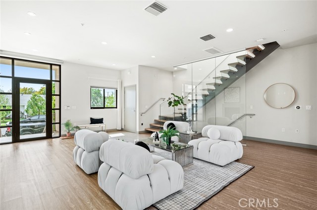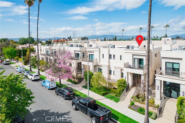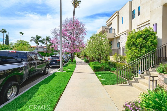 Discover a stunning blend of greenery and classic charm in this exceptional tri-level townhome, located south of the boulevard in the highly sought-after Villas at the Village Walk. This beautifully designed three-bedroom, two-and-a-half-bath residence offers over 1,800 square feet of thoughtfully crafted living space. The open-concept floor plan is perfect for entertaining, featuring a gourmet kitchen equipped with top-of-the-line GE Monogram stainless steel appliances, elegant stone countertops, Italian glass-faced designer cabinetry, a mosaic glass backsplash, and dual stainless steel sinks. The expansive island, complete with a commercial-grade cooktop and overhead venting system, makes meal preparation effortless. The inviting living room showcases a cozy gas fireplace, while wide-plank laminate flooring extends throughout the home, enhancing its modern aesthetic. A striking glass wall and floating staircase lead to the upper level, where natural light pours into every room. The luxurious master suite boasts an oversized walk-in closet and a spa-like bathroom with a separate shower and soaking tub. Step onto the private balcony adjacent to the master suite and unwind with your favorite drink as you take in the sunset. The two additional bedrooms are generously sized, each offering ample closet space. Thoughtful designer details include high-end electrical and plumbing fixtures, Hunter Douglas custom fabric window treatments with automated controls, and prewiring for A/V and security systems. The rear patio is a private oasis featuring tiled flooring, synthetic turf, and drought-resistant landscaping. The lower level provides direct access to a spacious two-car side-by-side garage, as well as a dedicated laundry area. Additional guest parking is available within the secure gated driveway. With a monthly HOA fee of $700, residents enjoy exclusive access to a pool and fitness suite in the adjacent apartment complex, as well as backyard watering system maintenance. This prime location offers walking-distance convenience to premier shopping (TJ Maxx, Vons, CVS, Nordstrom Rack, Walgreens and Coming Soon Trader Joe's...etc), dining, medical offices, and effortless freeway access. Welcome to a home that perfectly balances luxury, comfort, and convenience!Interested in this Listing?