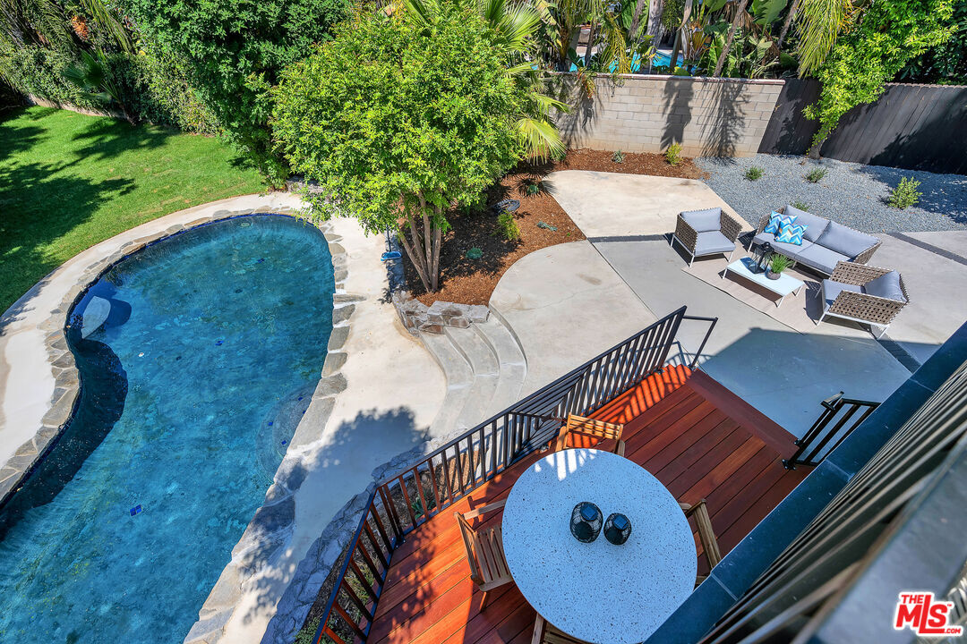 Welcome to this exceptional property ideally located South of the Boulevard. This reimagined home offers and unparalleled blend of modern elegance and charm. The spacious 3,741 s.f. floor plan offers seamless indoor/outdoor living with multiple living areas. The spacious living room features a fireplace, built in cabinets, wine refrigerator and French doors that opens to a new redwood deck overlooking the picturesque yard make it ideal for entertaining. The gourmet kitchen is a culinary dream with custom cabinets, Viking appliances, huge island with Taj Mahal quartzite and informal/formal dining areas as well as outdoor seating area for al fresco dining. The lavish primary suite is the only room on the second floor. Highlights include two professionally designed walk in closets, a luxurious spa style bath with Carrara marble floors, dual vanity with custom cabinets, soaking tub and separate shower. You will love the private tree top balcony where you can enjoy the views . Three additional beautifully redesigned bedrooms. One is located on opposite site of the house making it ideal for an office or guest suite with a private patio and easy access to the pool. The other baths also feature Carrara marble floors, custom cabinets and high end fixtures. The expansive 17,217 s.f. yard embodies quintessential California living. The professionally landscaped yard features palms, mature trees - including orange and lemon trees throughout the verdant oasis. The grotto like sparkling pool is surrounded by multiple patios and decks offering plenty of room for relaxation. This lovely home features hardwood floors, new dual zoned HVAC, new roof, new windows, two separate garages and circular driveway with gated access for privacy/security. There are many more upgrades and features to this beautifully upgraded home. Surrounded by multi-million dollar estates. Quick and convenient access to shops, restaurants, schools and freeway. This home is not to be missed.