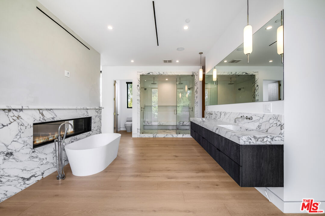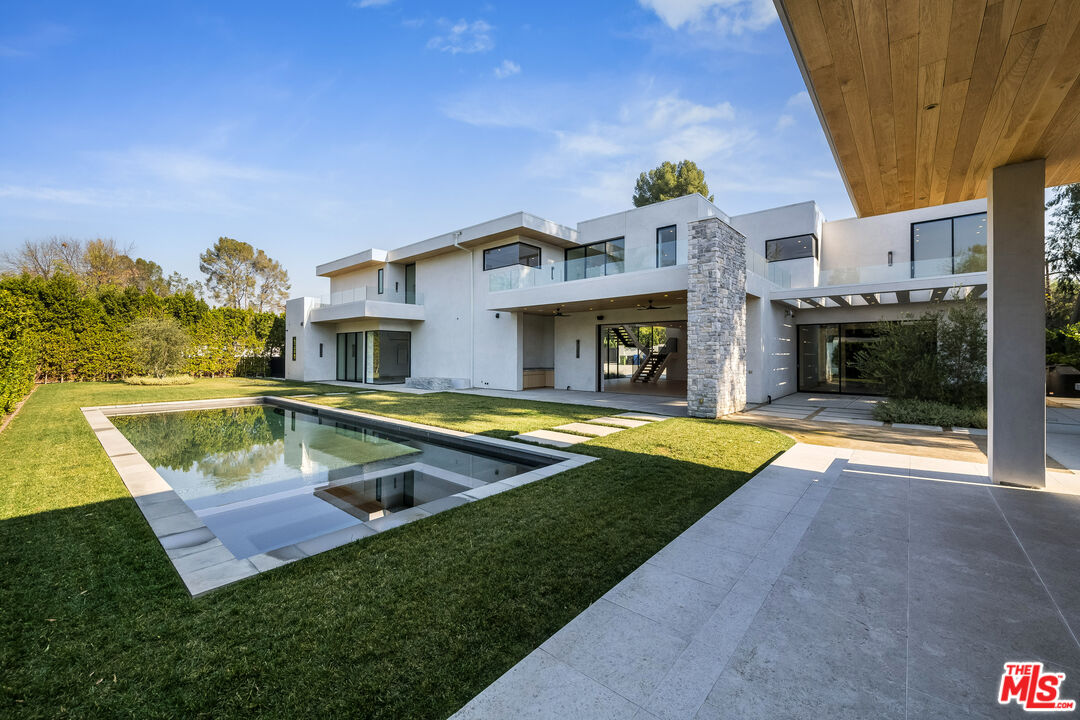 Modern Masterpiece in Melody AcresJust moments from Ventura Boulevard, this stunning 5-bedroom, 8-bathroom home offers the perfect blend of modern elegance and effortless California living.Step into a chef's dream kitchen, adorned with exquisite Viola marble and imported custom cabinetry, seamlessly flowing into the backyard and family room for the ultimate indoor-outdoor lifestyle. The first floor boasts soaring 10-foot ceilings and a custom home theater with rich wood paneling, creating a luxurious entertainment experience.Upstairs, the expansive primary suite rivals top-tier hotels, featuring a dual-sided fireplace, multiple balconies, and a wraparound custom closet. The home's organic palette softens its modern lines, infusing a sense of tranquility throughout. Each of the three additional upstairs bedrooms includes an ensuite bath, spacious closet, and private balcony.Designed for entertaining, the outdoor space is a true retreat, complete with a sports court, lap pool, jacuzzi, outdoor kitchen with a BBQ and flat-top grill, cabana, fire pit, and a covered patio. The property also offers two separate garages accommodating 46 vehicles, plus additional space for a boat or RV. Gated for privacy and equipped with a Control4 Smart Home system, this exceptional residence delivers the pinnacle of luxury and convenience.