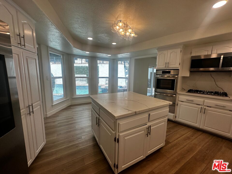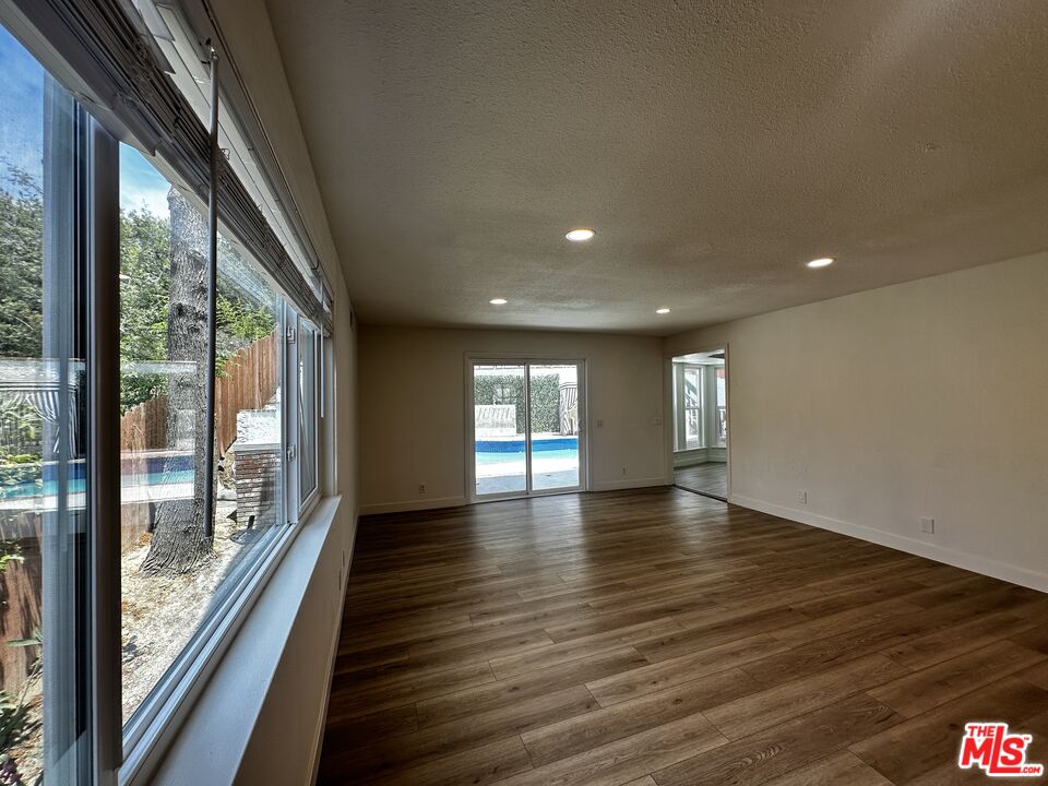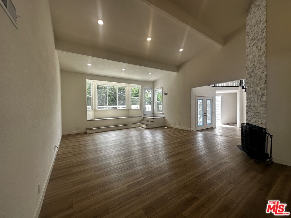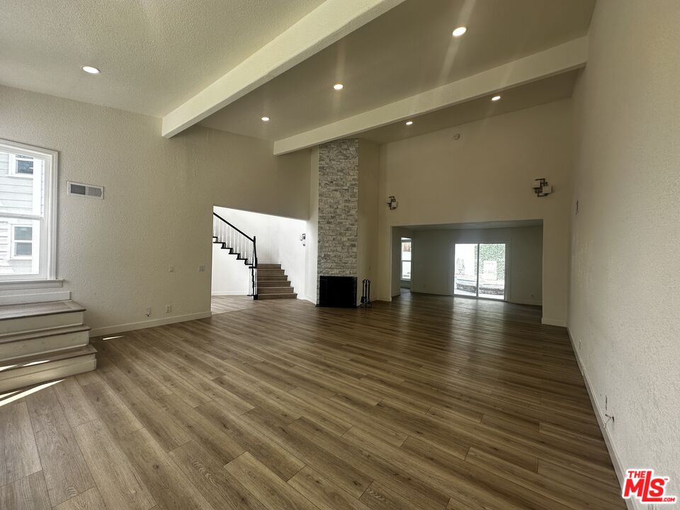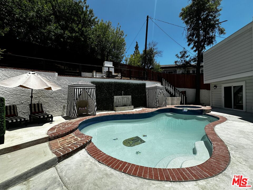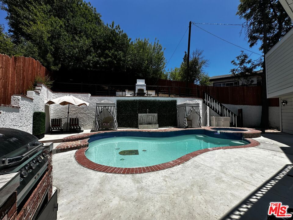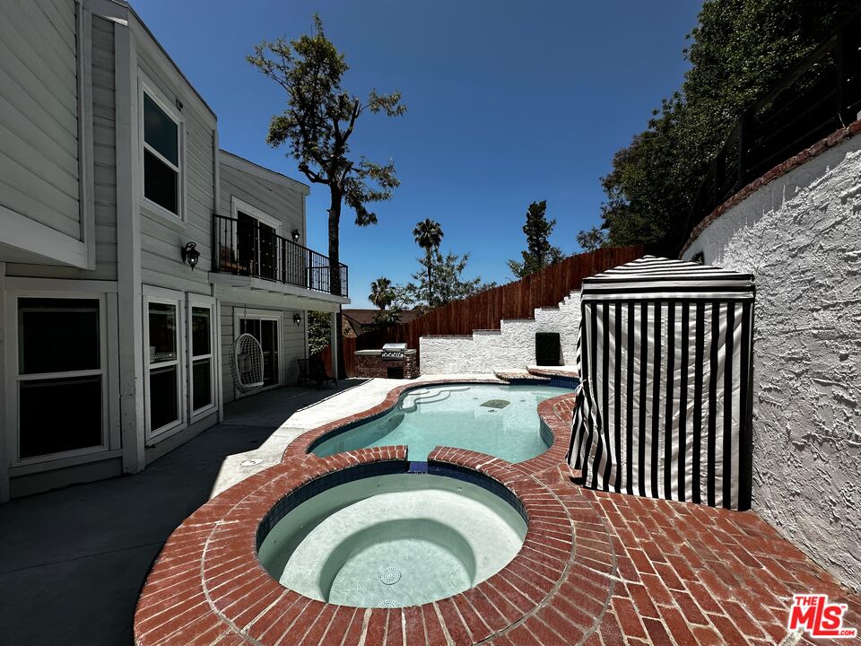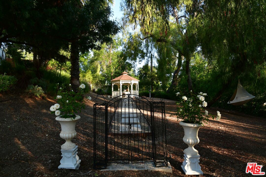 Discover this beautifully updated two-story estate nestled behind gates on an expansive ~17,803 SF lot in the heart of Tarzana. Offering 5 bedrooms and 5 bathrooms across ~3,304 SF, this versatile home includes a private attached guest house and two 2-car garages perfect for a home studio, office, or workshop. The main living room impresses with soaring vaulted ceilings, a bay window adding abundant natural light, and a warm, inviting atmosphere centered around one of three fireplaces. The chef's eat-in kitchen is equipped with a central island, a wine chiller refrigerator, solid quartz composite countertops, and a backsplash, ideal for both everyday cooking and hosting guests. The family room features a bar area, enhancing the home's seamless flow for entertaining. The grand primary suite boasts a spa-style bath, a generous walk-in closet, and access to a private balcony retreat. Recessed lighting and LVT plank flooring throughout. Step outside into a serene backyard oasis complete with a sparkling pool, spa, built-in BBQ, outdoor fireplace, and ample patio space for lounging or al fresco dining. A lush front garden includes a romantic gazebo and a peaceful walking path. Additional amenities include multiple balconies, a grand-sized entertainer's deck, and proximity to Calvert Charter (K-5), Taft Charter High School, and Ventura Blvd's best restaurants and boutiques. A rare lease offering that blends space, style, and location - perfect for those seeking comfort, privacy, and the SoCal lifestyle.
