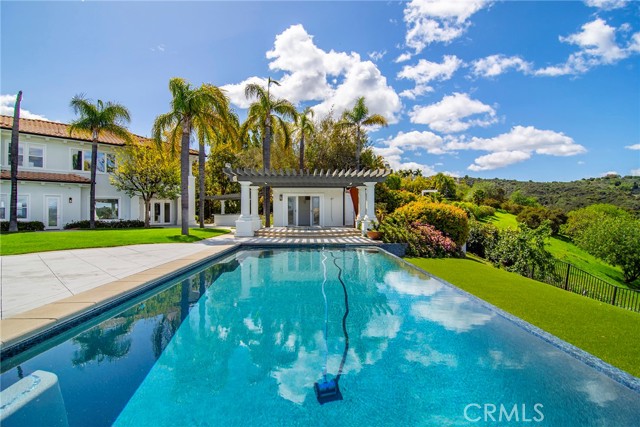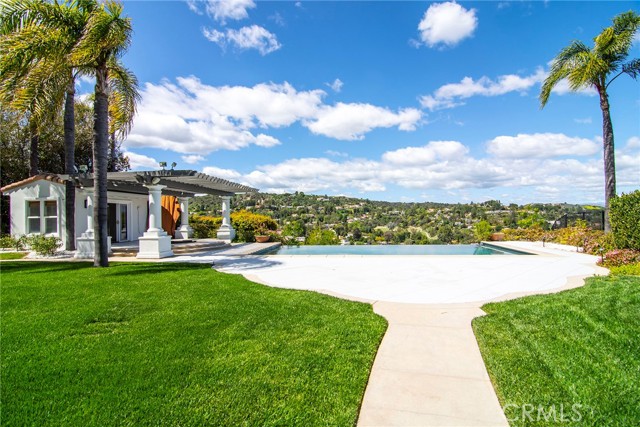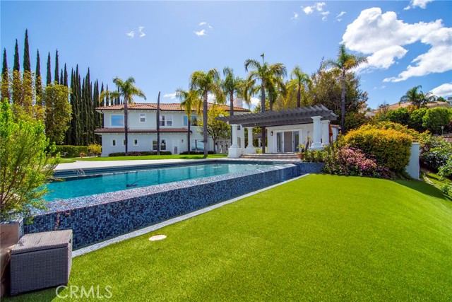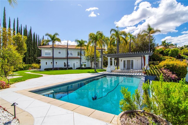 Presenting an amazing guard-gated lease opportunity on a sprawling lot in prestigious Mulholland Park. Spellbinding views of glistening valley lights, majestic mountains, tranquil natural surroundings & lush Braemar Country club fairways will take your breath way. This desirable six-bedroom Plan 5 offers nearly 6,400 sq. ft. of luxurious living on one of the largest lots within this cherished community. An entry & living room featuring 21 ft. soaring ceilings provides the volume you crave. Natural light drawn by a vast array of windows bathes throughout & beautiful hardwood flooring blankets the interior. An entry-adjacent parlor makes a wonderful office. Massive kitchen, which opens to a family room with wet-bar, delivers two center-islands, exquisite counters, loads of cabinetry, walk-in pantry & a spacious dining area where a large window captures a sensational snapshot of the glorious grounds & stunning views. Incredible formal dining & convenient ensuite completes the lower level. Ascend the distinct dual-stairwell to explore more. At the south wing, you ll find two ensuites, one enhanced by a large balcony. The additional three suites, including the primary, soak up the mesmerizing sites. In addition to dazzling views, the primary suite unites with a sitting area featuring a cozy fireplace, romantic balcony & a sizeable luxurious bath with a soothing spa tub, huge dual rain-head shower & two walk-in closets. Outside ..paradise awaits. Large grassy grounds, ideal barbeque center & a fabulous five hole putting green is merely just the beginning. An incredible pool house with bathroom & an amazing infinity pool & spa superbly positioned to devour the sumptuous visions make this one so hard to resist. Unique two 2-car garages & gated courtyard are ideal. Just a stone s throw to Braemar & El Cabellero Country Clubs, local hiking & freeway close. Don t miss!Interested in this Listing?