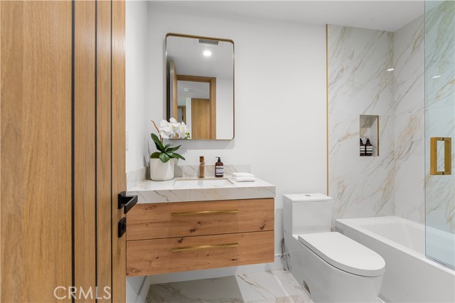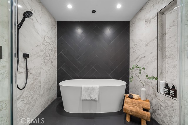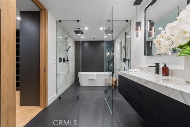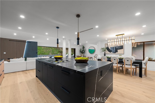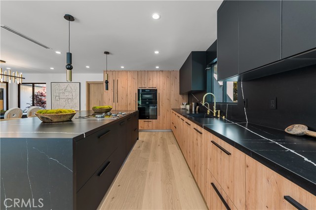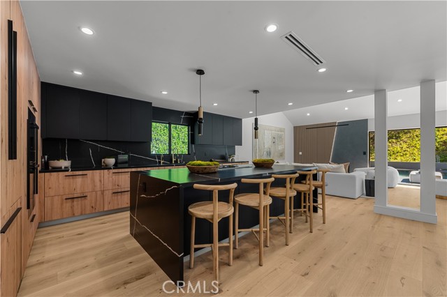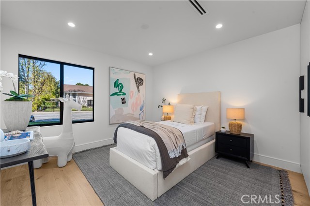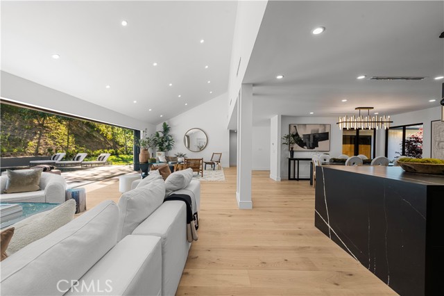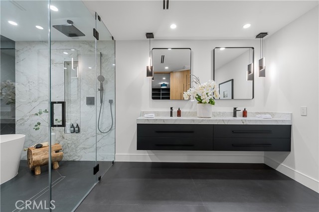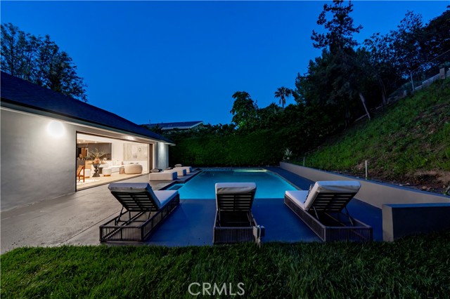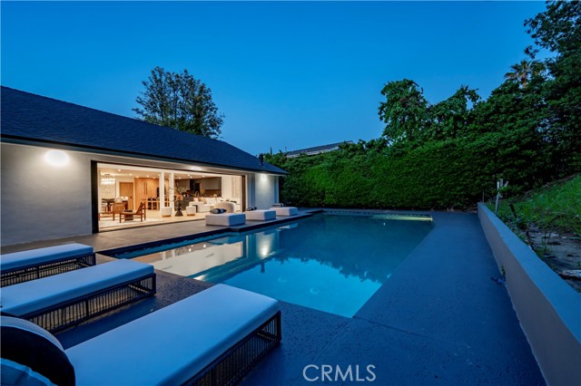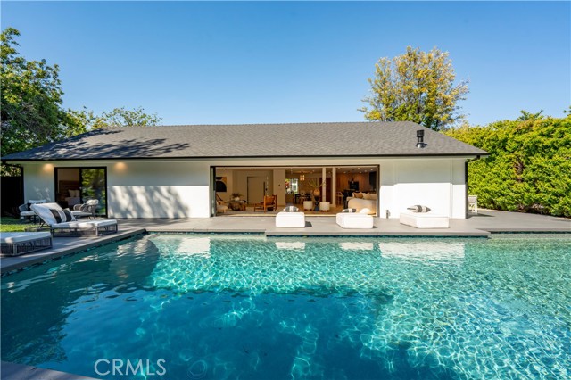 Step into a world of timeless elegance with this stunning 4-bedroom, 3.5-bathroom oasis nestled in the heart of Tarzana. Enveloped by lush greenery under the warm glow of sunshine, this brand new 3,000-square foot residence embodies the epitome of suburban luxury. Crafted with meticulous attention to detail, it seamlessly blends chic architecture with contemporary comforts for an unparalleled living experience. As you enter through the bespoke custom pivot door, you are greeted by a sprawling open floor plan, accentuated by airy vaulted ceilings and sophisticated recessed lighting, all set against the backdrop of rustic white oak hardwood flooring a harmonious blend of classic and modern aesthetics. The gourmet kitchen is a culinary enthusiast's dream, boasting high-end European Bauformat cabinets, top-of-the-line Miele appliances, and exquisite Cosentino countertops in rich dark quartz complemented by opulent gold fixtures. A generous island, adorned with pendant lighting fixtures from Modern Forms, offers both functionality and style, making it the perfect centerpiece for gatherings. The formal living room exudes warmth and elegance, featuring a welcoming fireplace and a movable glass wall that seamlessly integrates indoor and outdoor living, providing direct access to the refreshing swimming pool a true entertainer's delight. Luxurious bathrooms showcase genuine Dekton slim white Calacatta-silestone flooring and meticulously crafted fixtures, adding an extra layer of refinement. The primary bedroom is a sanctuary of grandeur, with lofty vaulted ceilings, a cozy fireplace, private bathroom, walk-in closet, and direct pool access an oasis within an oasis. Outside, the meticulously manicured landscape frames the inviting pool and spa, creating a serene atmosphere ideal for relaxation and entertainment. The open patio beckons for seasonal gatherings and alfresco dining, enveloped in nature's embrace. Modern amenities abound, including temperature-controlled settings, a new shingled roof, sleek black aluminum rain gutters, a new 200amp electrical panel, new A/C ducting, NEW motorized window coverings, and an attached 3-car garage ensuring convenience and comfort. This is more than a home; it's a lifestyle a seamless fusion of luxury and functionality that exceeds every expectation. Don't miss the opportunity to make this Tarzana gem your own. Schedule your private tour today and experience suburban living at its finest.Interested in this Listing?