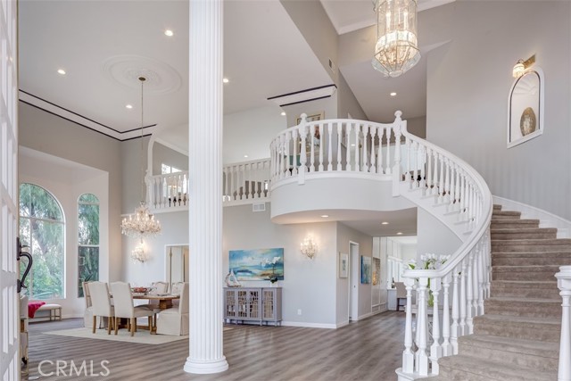 The Hills of Tarzana ENJOY views that go as far as the eye can see! Located on a very private cul-de-sac this custom-built gated home is an entertainer's dream. The estate features an impressive grand entrance hall with an elegant spiral staircase, open plan formal living room and dining room with Columns and 25 foot ceilings. Kitchen has been Remodeled with stove, countertops and farm-style sink. The family room has a built in with wet bar next to the dual glass sliding doors to the backyard. Luxury home sits on a huge lot of land featuring pool with spa, a koi pond with built in waterfall and lush citrus and fruit trees oasis. Primary bedroom has views of the city/ golf course and a balcony to enjoy indoor-outdoor living, has a his and her full bathrooms and his and her closets that are separate rooms within the primary bedroom suite. Two more bedrooms upstairs each with full bathrooms and in the hallway is a laundry chute to laundry room on first floor. Two bedrooms located downstairs and one full bathroom. Attention to detail is what this home offers and covered RV, boat parking on the side of the home not to mention a finished 3 car garage.Interested in this Listing?