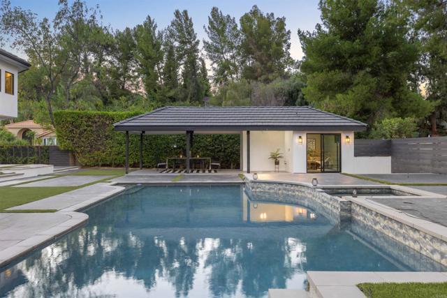 Step into the comfort of luxury living at 4256 Tarzana Estates Drive, nestled within an exclusive gated community with only just 12 homes. 20,000+/-sqft flat lot size! South of the BLVD!!! This exquisite 6 bedroom, 6 bathroom abode spans an impressive 6604 square feet living, and enveloping you in timeless sophistication from the moment you enter the grand foyer, adorned with a breathtaking wrought iron staircase, wide planked white oak floors throughout and lofty ceilings. The kitchen, a sanctuary for culinary enthusiasts, showcases exquisite quartz countertops and top-of-the-line stainless steel appliances, including a dishwasher, 6-burner stove, built-in espresso machine, and a double refrigerator. A spacious walk-in pantry and dual islands, one featuring a second sink, offer both practicality and elegance for dining and entertaining alike. Seamlessly blending indoor and outdoor living, accordion-style glass sliding doors open to reveal a captivating backyard oasis, ideal for hosting gatherings and soirees. Here, a glistening pool, inviting spa, and covered outdoor pavilion area beckon for relaxation and enjoyment. Additionally, a detached guest casita awaits, complete with a bedroom and bathroom, ensuring privacy and comfort for visitors. Amazing Valley Views!! Other attributes: EV charger, 3-car garage, gated community, cul de sac, light and bright, tall ceilings, remodeled, large balconies with views, fireplace, dual primary bedroom closets, spacious bedrooms, one down and 5 up, large flat lot size,... and much much more! This property is a must see!! Immerse yourself in the opulence of 4256 Tarzana Estates Drive and discover the epitome of elevated living in Tarzana.Interested in this Listing?