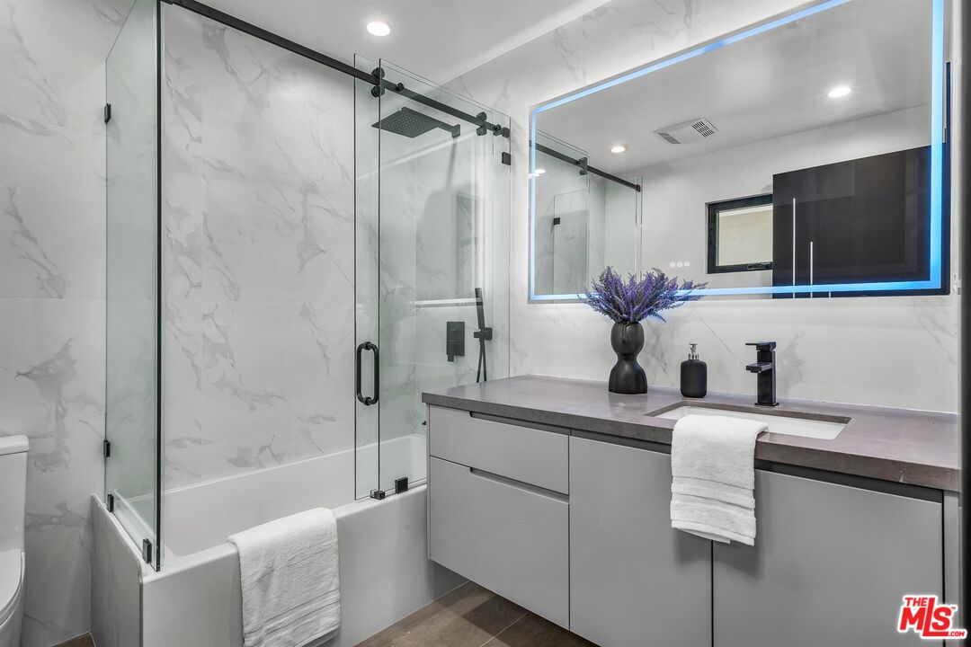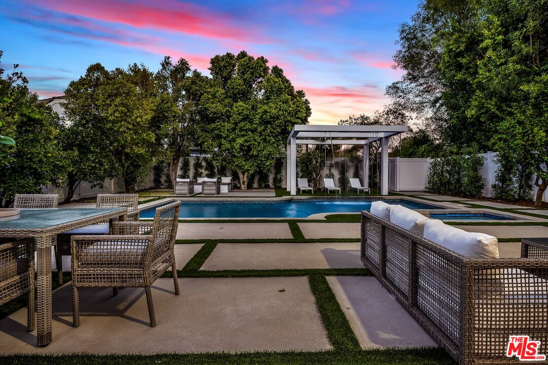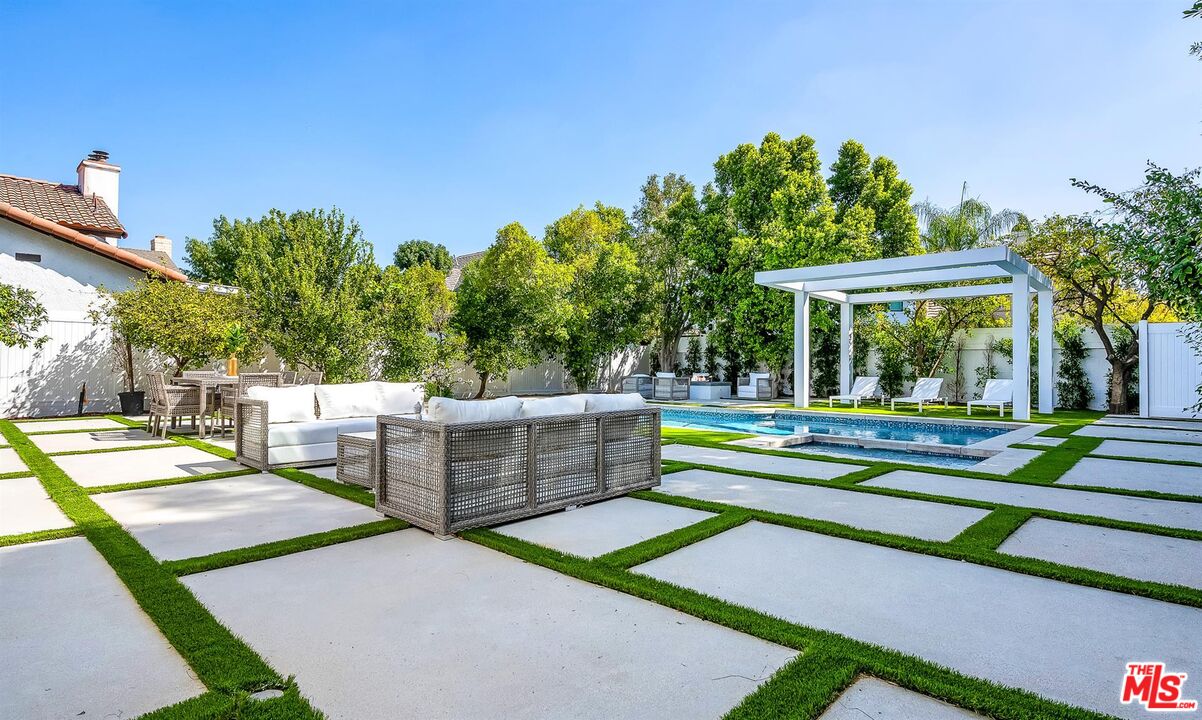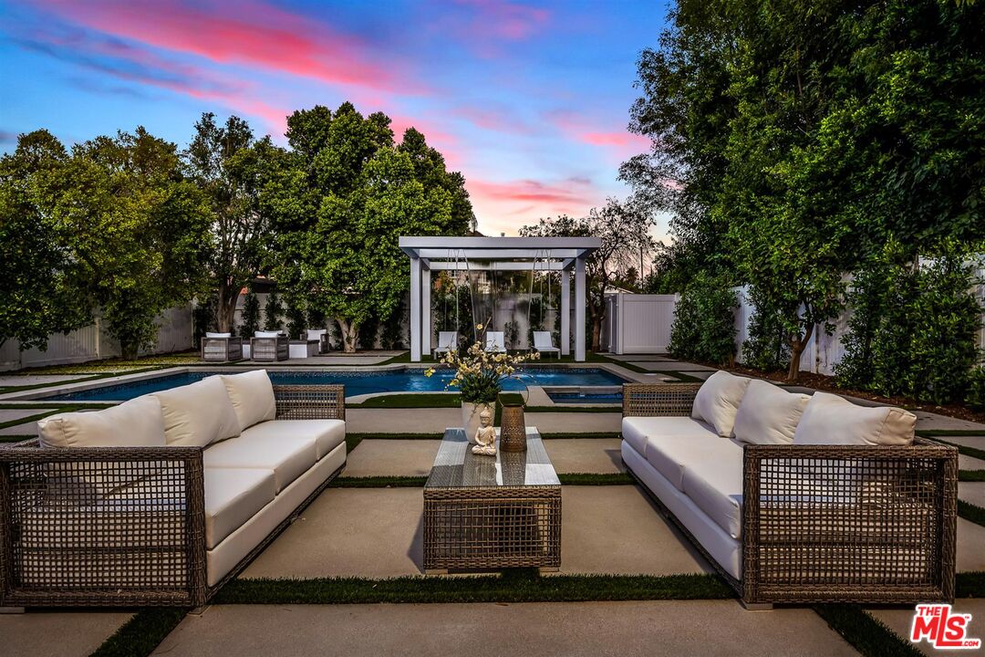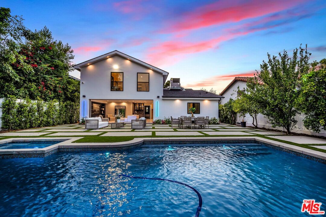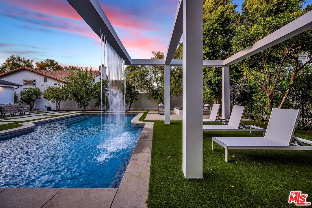 Presenting an exceptional blend of luxury and contemporary design in the heart of Tarzana, south of Ventura! Boasting 4 bedrooms and 4.5 baths, this home seamlessly blends immaculate design with the warmth of "home," making it perfect for living. The main floor features a formal living room, a dining room, family room, a gourmet kitchen. The expansive gourmet chef's kitchen showcases high-end finishes, top-of-the-line Miele appliances, and an oversized island. Family room comes complete with a custom built-in bar, dedicated wine cellar, and FOOLDING patio doors that opens to the private backyard oasis great for indoor- out door gatherings. One en-suite bedroom is conveniently located on the main floor which could be a junior suite with a private entre. There are 3 generously sized bedrooms which are all en suite with large bathrooms for privacy and comfort are located in the second floor. The primary bedroom featuring an office, large walk-in closet, and a luxurious bathroom with a freestanding soaking tub, and a massive standing glass shower. This smart home is equipped with a great system, allowing you to set your home to your comfort standards with a touch of a button. Folding patio doors open to the lush landscaping creates a private oasis with a pool/spa and an incredible water /waterfall feature, providing an escape from the bustling city and an opportunity to soak up the serenity. No expense has been spared on this home, finished with exquisite and high-quality details and finishes throughout. Conveniently situated with easy access to Ventura Blvd &, dining, shopping and more, this home is a must see.Interested in this Listing?