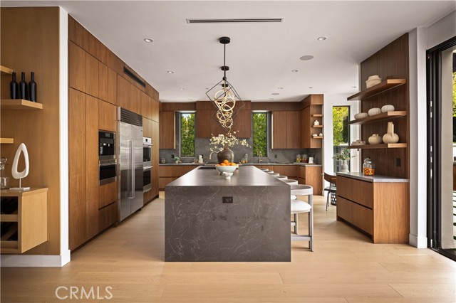 Stunning Private Estate South of the Boulevard located in one of the most desirable neighborhoods south of the boulevard, this exceptional private gated estate offers the perfect blend of modern design and luxurious living. Set on beautifully landscaped grounds, the home boasts 5 bedrooms, 7 bathrooms, a study, a media room, and an array of high-end amenities that make it an entertainer's dream. The open floor plan creates a seamless flow between the living spaces, making it ideal for both intimate gatherings and large-scale entertaining. The chef s kitchen is a culinary masterpiece, featuring Wolf and Sub-Zero appliances, a large center island, quartz countertops, a breakfast area, and a Miele coffee maker. The romantic primary suite serves as a serene retreat with a cozy fireplace, a spa-like bathroom, a large walk-in closet, and two private balconies. Additional highlights include 6 fireplaces throughout the home, a Crestron smart home system, Fleetwood pocket doors, integrated indoor and outdoor speaker systems, and security cameras. The exterior is just as impressive, with lush landscaping, a large reverse infinity pool and spa, a pool house, and a fully equipped outdoor kitchen with a 5-burner stove, BBQ, and beverage refrigerator. A covered patio with dual fireplaces is perfect for year-round entertaining and relaxation. For active pursuits, there s a lighted sport court and a putting green, ensuring there s something for everyone. Other standout features include a detached garage with ample parking space for luxury vehicles, RVs, and tour buses, as well as room for 10+ additional cars. The property is fully equipped with solar panels and underground utilities for enhanced sustainability. This home offers unparalleled privacy, comfort, and style, making it an ideal sanctuary for those seeking the ultimate in luxury living.Interested in this Listing?