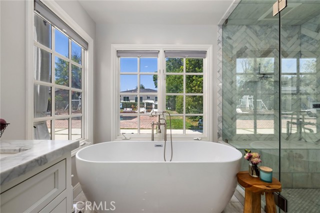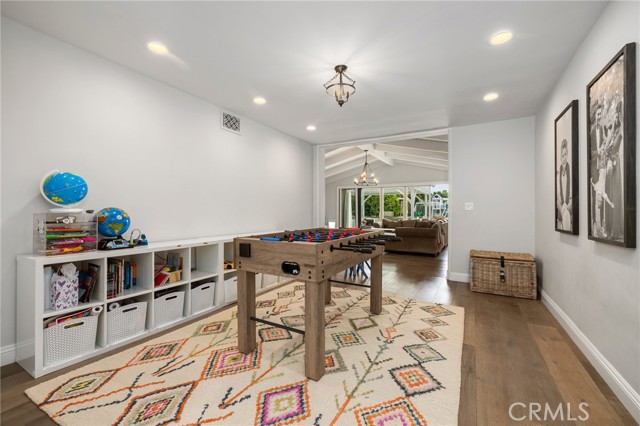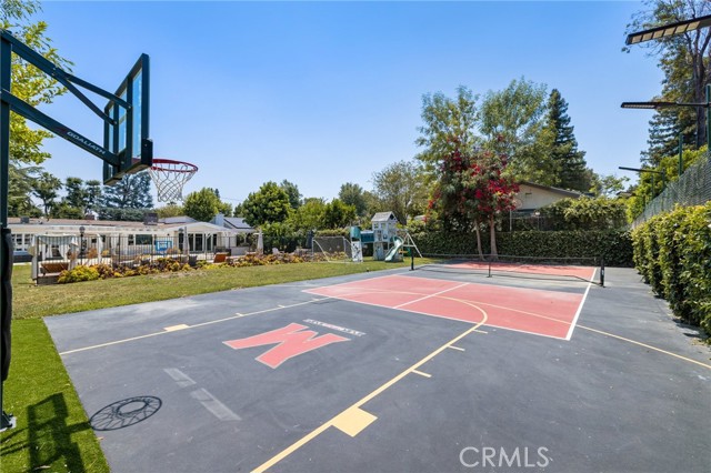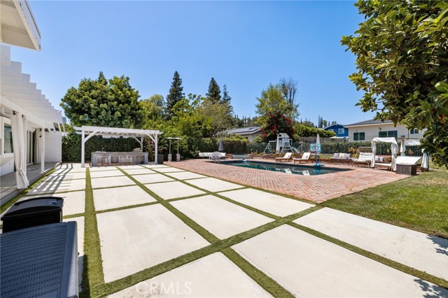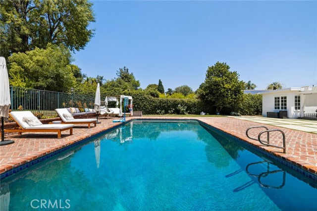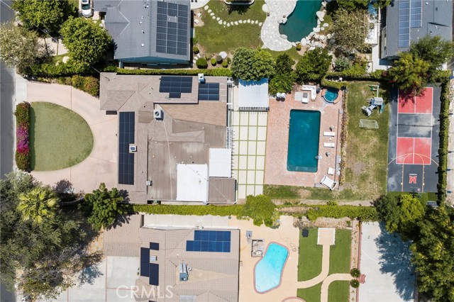 Welcome to this beautifully updated and fully furnished single-story home, ideally located south of Ventura Boulevard in the heart of Tarzana. Situated on an expansive, flat 18,000 sq ft lot, this 5-bedroom, 3-bathroom residence was thoughtfully designed for those who love to entertain, offering a seamless flow of indoor and outdoor living. The open-concept kitchen connects effortlessly to the spacious family room with vaulted ceilings and large multislider doors that open to a private backyard oasis. Enjoy summer gatherings with a built-in BBQ, bar seating, and plenty of space to relax or entertain. The oversized rectangular pool is perfect for swimming laps, while the adjacent sports court is ideal for pickleball or basketball enthusiasts. A gated, oversized horseshoe-shaped driveway provides ample parking, perfect for car collectors or large gatherings. Additional highlights include solar panels for energy efficiency and modern living. This is California living at its finest.