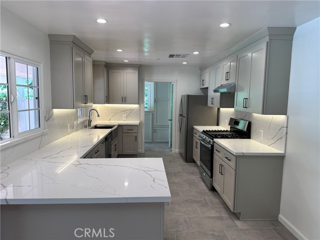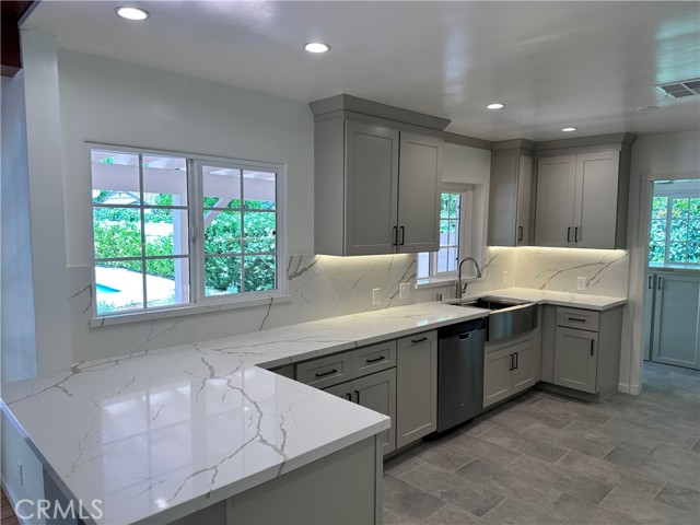 Discover unparalleled luxury and comfort in this exquisite, remodeled single-story home, ideally situated on one of Tarzana's most prestigious streets, south of Ventura Blvd. Spanning 1,911 sq ft, this gated residence offers a sophisticated open-concept living space, featuring high-end finishes and an incredible resort-style backyard. As you step inside, you'll be greeted by gleaming hardwood floors throughout and an abundance of natural light streaming through energy-efficient dual-pane windows, creating a bright and inviting atmosphere. The heart of this home is the brand new gourmet kitchen, a chef's dream complete with sleek stainless steel appliances, exquisite quartz countertops, and a charming eating area. Retreat to the primary bedroom, a private sanctuary featuring its own luxurious en-suite bathroom and a dedicated sitting area a perfect spot for unwinding. Two additional well-appointed bedrooms and 1.5 more brand new bathrooms ensure comfort and convenience for all. A former living room with a cozy fireplace adds a touch of classic charm. The thoughtfully designed floor plan includes a spacious family room that seamlessly opens to a magnificent, beautifully landscaped huge backyard. This outdoor entertainer's paradise boasts a brand new patio perfect for outdoor entertaining, and a large, sparkling swimming pool for endless summer enjoyment. This is more than just a home; it's a lifestyle.Interested in this Listing?