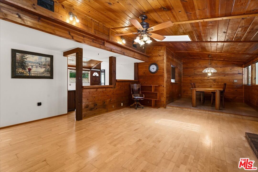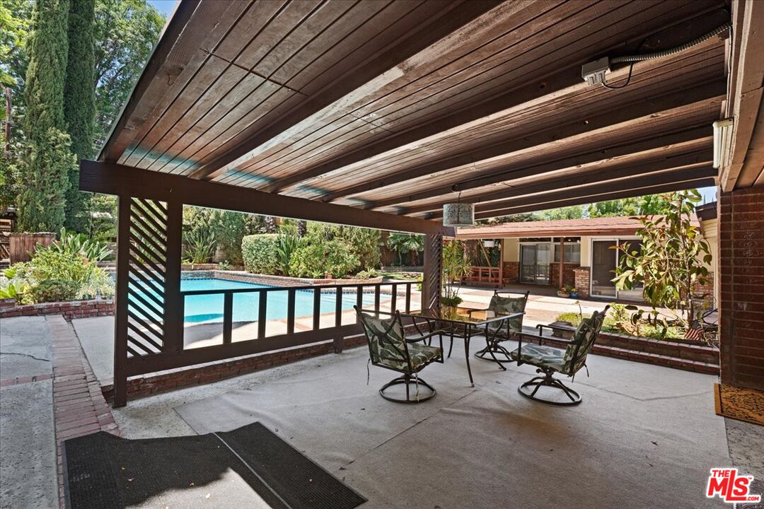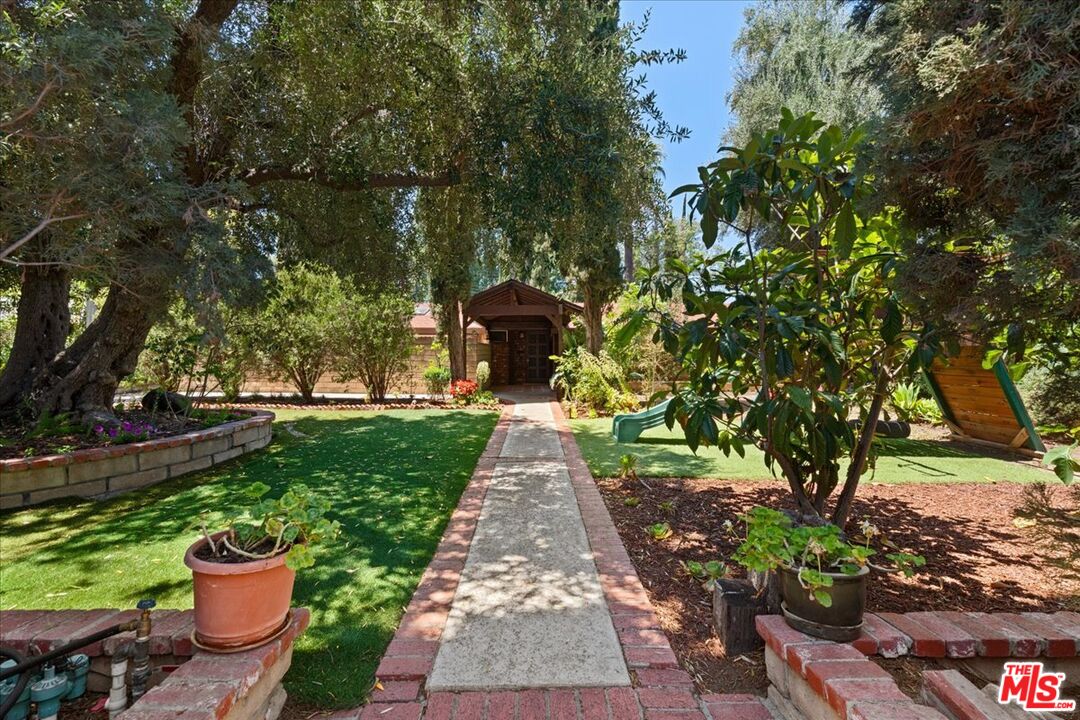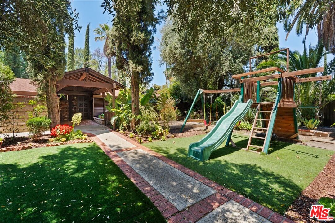This unique ranch-style home, situated on a massive lot in the heart of Tarzana, offers comfortable living and spacious indoor and outdoor areas, all set on a large, private lot with mature landscaping. A highlight of the property is the spacious, high-fenced front yard garden, which offers plenty of privacy, mature trees, and vibrant flowers, making it an inviting space for relaxation or gardening. Inside, you'll find a bright, well-equipped kitchen with granite countertops, oversized windows, ample pantry space, and all major appliances. The elevated dining area, connected by a serving hatch, is ideal for dinners and entertaining. The main bedroom features wooden floors and a private full bathroom. Three additional bedrooms offer flexibility for family, guests, or a home office. The inviting living room features wood floors, an abundance of natural light, a fireplace, and sliding doors that open to a covered patio and the pool. There is also a separate, spacious family room for additional living space. Outdoors, enjoy a large pool, two covered patios, and a lawn surrounded by mature cypress, fruit, and olive trees for privacy and greenery. A small playground adds to the appeal. There's a secondary patio just off the kitchen, perfect for morning coffee or casual meals. The home features washer and dryer hook-ups in the dedicated laundry closet, located near the kitchen, and a detached, two-car, gated garage with alley access. The tenant is responsible for gas, water, electricity, and trash, while the owner covers gardening and weekly pool maintenance.This property offers a great balance of everyday comfort and outdoor enjoyment.