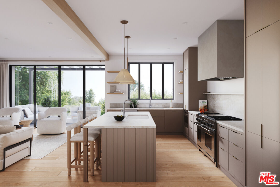 Tucked behind gates and mature hedging, the Palms Farmhouse is an exquisite new construction offering a secure retreat in the heart of Venice. Set back from the street on a rare oversized 6,061 square foot lot with 4-bedrooms, 4.5-bathrooms, and 3,412 SF of living space, this under construction home designed and built by Bespoke Homes California has a transitional interior finish with a Venice modern take on a farmhouse. The main level features a great room with a custom fireplace and expansive sliding glass doors that open to an impressive backyard. The kitchen is the true centerpiece: generous in scale, with a statement island, custom cabinetry, and a passthrough window that connects directly to the outdoor bar. A large dining room sits just off of the kitchen and a main-level en-suite bedroom provides flexibility for guests or home office. Upstairs, vaulted ceilings in every bedroom and skylights elevate the sense of space. The primary suite features its own fireplace, walk-in closet, and spa-like en-suite bathroom. Two additional en suite bedrooms, large linen storage closet, and a separate laundry room complete the upper level. Outside enjoy a full outdoor kitchen, a large pergola-covered patio, and generous yard space with curated landscaping perfect for quiet evenings or lively gatherings. Secluded from the street with ample parking and a secure set-back presence, this designer-done home offers a true sense of retreat just moments from Abbot Kinney, the beach, and everything that makes Venice one of L.A.'s most sought-after communities. The property is expected to be completed October 2025. PHOTOS ARE RENDERINGS NOT REAL PHOTOS.Interested in this Listing?