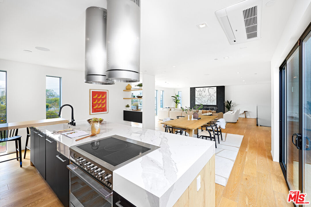 Experience the pinnacle of contemporary luxury in this newly built Venice Beach retreat, boasting an expansive 3,411 square foot layout capturing stunning panoramic views of treetops, mountains, and city lights through vast walls of windows. Sunlight cascades throughout every room, enhancing the home's sophisticated yet inviting ambiance. At the heart of the home lies an exquisite Italian kitchen, adorned with premium Fisher & Paykel appliances, elegant built in shelving, custom cabinetry, and a porcelain island that seamlessly transitions into a wraparound breakfast bar ideal for casual gatherings. Step through sliding glass doors onto the oversized private deck, a perfect setting for sunlit relaxation or stylish entertaining. 8.5" wide plank oak flooring gracefully unifies the spacious dining and living areas, highlighted by an inviting built in fireplace, creating an airy and open environment suited to both intimate gatherings and lively social events. The primary suite serves as a tranquil sanctuary, offering a generous balcony, a meticulously crafted Italian walk in closet, and a lavish bathroom featuring dual Italian vanities and a luxurious floating tub within a stunning porcelain clad shower. Two additional bedrooms provide exceptional comfort, each complemented by custom Italian millwork closets and private en suite baths. Versatile living spaces abound, including a 4th bedroom suite ideal as a private guest room, dedicated office, or home gym. The expansive family room opens effortlessly onto an outdoor patio, extending the living area and embracing indoor outdoor harmony. Modern amenities elevate your lifestyle with smart home automation featuring app controlled lighting, integrated Sonos sound system, five Lorex security cameras, DoorBird entry, alarm system, prewired solar, EV charger readiness, a rough in for an elevator if needed, and a spacious two car garage. Nestled just moments from the vibrant energy of Abbot Kinney, indulge in Venice Beach's premier dining, boutique shopping, and cultural hotspots, making this home an unparalleled blend of luxury, comfort, and iconic coastal living.Interested in this Listing?