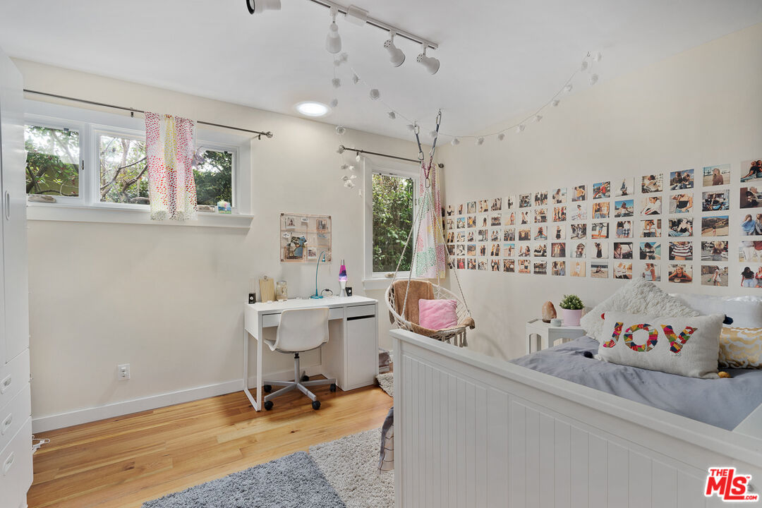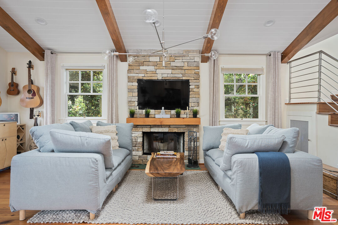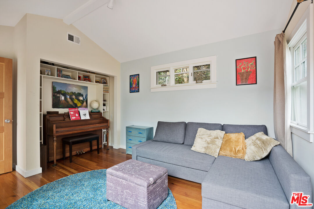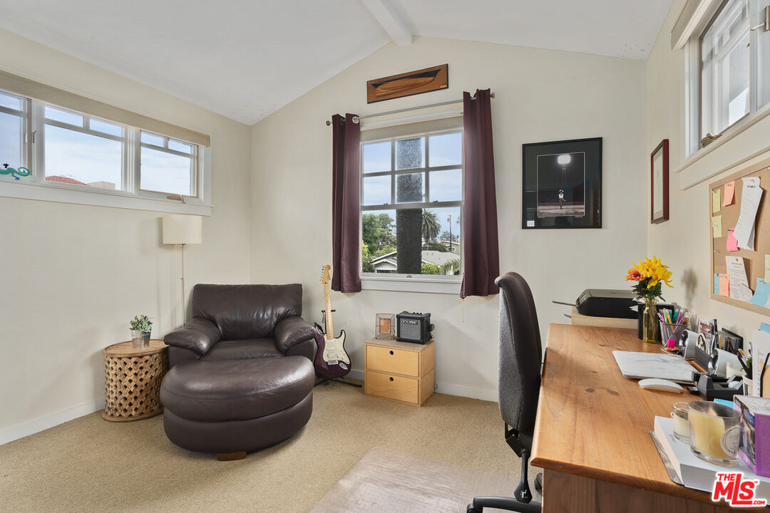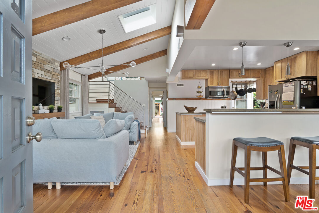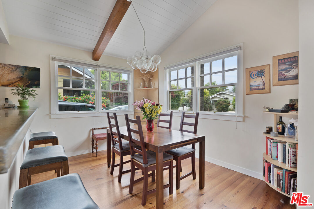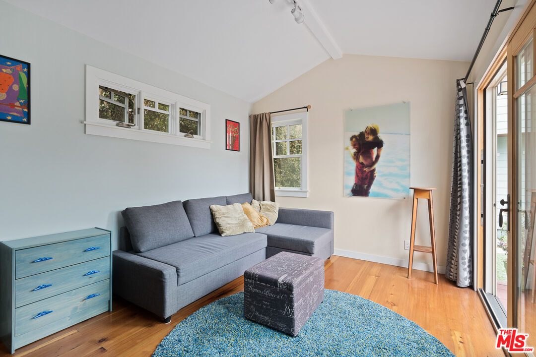 Tailor-made for a family looking for a soft place to land, this stunning contemporary Craftsman home welcomes you to one of the sweetest pockets of Venice. Glyndon Avenue is a truly special street known for its annual block party and a warm community that looks after one another. An inviting front porch brings you through the front door into an open floor-plan living space with vaulted, beamed ceilings, a generous, airy, updated kitchen, and a stone-framed wood-burning fireplace that anchors the living room and naturally blends with the warm reclaimed hardwood floors (100 yr-old pine from a Harley Davidson factory in Wisconsin). The main two-story house features four bedrooms and three baths with two bedrooms upstairs including a master suite that feels like a treehouse with an ensuite spa bathroom, private veranda, and ample closet space. The two additional bedrooms sit downstairs as part of a recent addition, along with a designated bathroom, and a den/music room that opens onto the expansive backyard and deck perfect for entertaining your great neighbors! Beyond the yard sits a detached two-car garage, next to an intimate work/yoga/gym space. Above is a studio guest house with a view - and with the full kitchen, bath, and veranda, it is perfect as an artist's studio, live-in parent or nanny home, or teen hideout. This neighborhood is a quiet gem of Venice Warm and friendly. Close to good public schools, great coffee, and groceries, as well as a short bike ride to the vibrant shopping and restaurants from Abbot Kinney to the beach. A rare opportunity makes this turnkey home available fully furnished. Find some peace and a breath of fresh air in your new Venice home.Interested in this Listing?