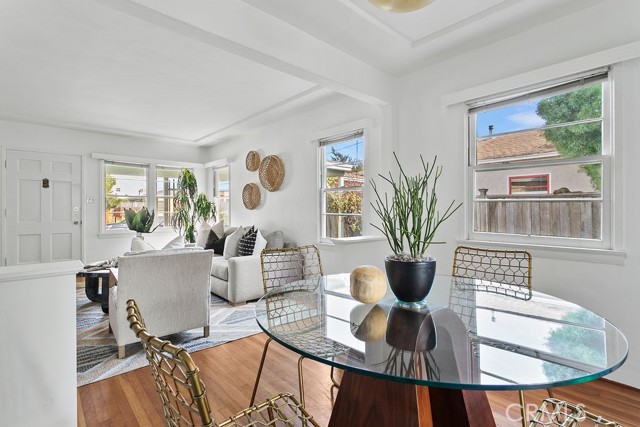 When a 1941 California Bungalow living meets the modern explosion of development and coastal luxury, you sometimes get an inspiring gem that defies the rules and maintains its own identity. This true California coastal bungalow still holds, with a tight fist, some of the nostalgic features of a simpler time. This 2 bedroom 1 bath 919 square foot home is situated on a 4255 square foot lot and gives the feeling of simplicity and open space in a time when space feels invaluable. Enter through a gated driveway to your private covered porch w/ room to watch the passing parade. Hardwood floors are believed to be original, and intricate coffer styled ceiling detail is a nod to an era long past. The spacious living room is complete with fresh paint, original double hung windows, plenty of light, and open concept living room/dining room space. Dining room isn t large, but it provides enough space for those cozy family meals. Kitchen is believed to be finished with original hardwood cabinets w/ intricate bottom frame detail on the uppers. Original ceramic tile with true to era inlaid detail. Plenty of light filters through picture window overlooking the backyard giving the kitchen a cozy but open feel. Utility room is spacious with stackable INDOOR laundry space, water heater, and upper storage. Bedrooms are what one might expect from a 919 square foot bungalow. Reasonably sized, simple, and utilitarian. One bedroom maintains the original built in closet space, while the other has been updated with mirrored doors. Both have large windows that give the home plenty of light. Bath is spacious given the original footprint, and is complete with tub/shower, vanity sink with original cabinets and counters, and frosted privacy window for plenty of ventilation. The backyard is what everyone needs in a cramped and crowded coastal setting. Plenty of grass area, covered patio, cactus garden. This home is a diamond in the rough and ready for someone to restore it to its former glory. A perfect coastal retreat, or the site of a future ultra lux gem.