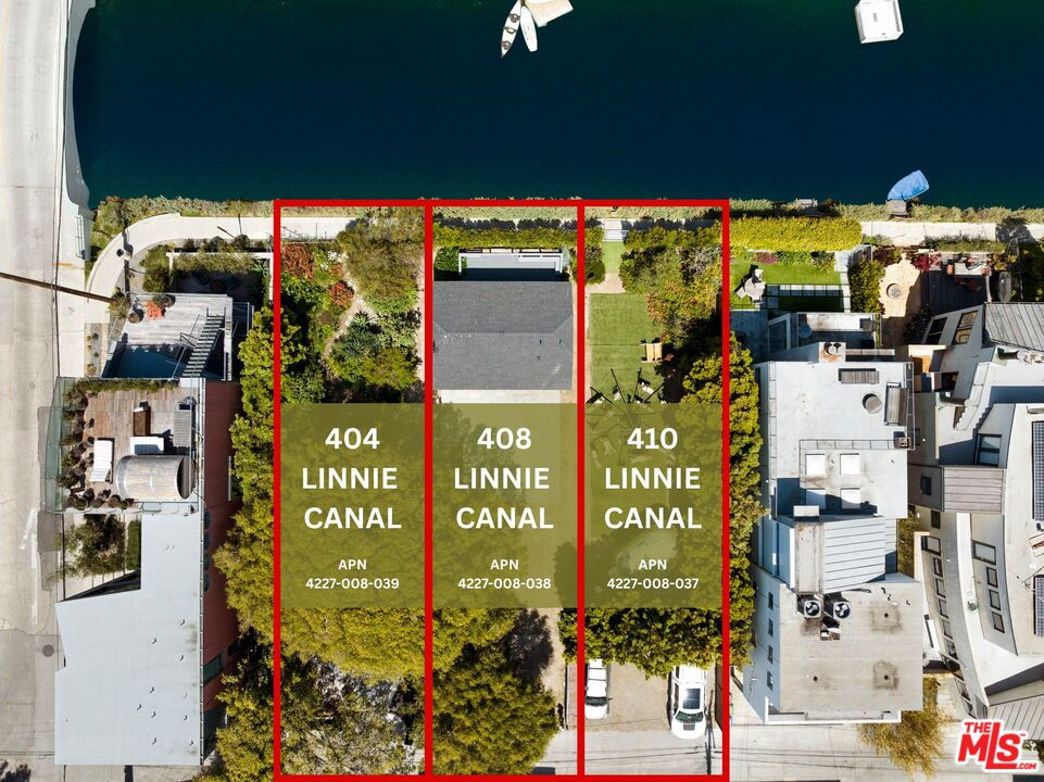 The term "rare development opportunity" is thrown around often, but as one of only 4 contiguous triple lot properties on the famed Venice Canals, 404 Linnie Canal is the real deal. Consisting of parcels 404, 408, and 410, this special property totals over 8,500 square feet of Canal-frontage potential and represents the last undeveloped contiguous lots on Linnie Canal. Situated in one of the best locations in the vibrant community of the Canals because of its quiet setting with a view of Linnie Canal Park and mature landscaping, the property affords the flexibility to create a dream compound in a number of different ways. The 404 Linnie Canal parcel has been issued LA City Coastal Commission permits for 3,551 livable square foot home with a total of 4,737 total floor square feet including decks and garages, designed by noted Canal architect Austin Peters. Next door at the 408 parcel, a 436 square foot bungalow style studio, which is listed on Survey LA, has been extensively rebuilt to today's modern standard. Complete with a custom kitchen, Italian floor tiles, hidden laundry, sliding doors that create a seamless indoor/outdoor flow, and a grandfathered-in 8 foot setback from the property line, this structure is an ideal guesthouse or pool house to adjoin your dream home next door. Whether you maximize the location of the bungalow to create a spacious yard, add a pool, or tastefully add on to the existing structure to maximize square footage, this parcel is primed to help create a spacious and peaceful setting at your future compound. The final parcel, 410 Linnie, is a blank canvas ideally positioned for development. With the low profile of the cottage at 408 Linnie, your view to the Dell bridge and Linnie Canal Park will be preserved, while mature Podocarpus hedges provide privacy from the neighbor to the East. This unique offering features a turnkey retreat, a development-ready lot, and an open canvas for your vision, all in the heart of the canals. A true oasis in the city, this one-of-a-kind opportunity is not to be missed.