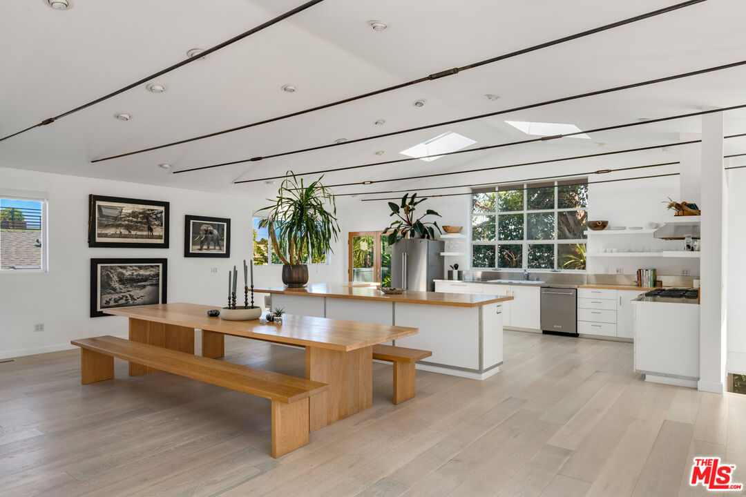 Welcome to a true masterpiece of modern luxury living in the heart of Venice Beach, where the charm of this coastal enclave meets the sophistication of New York loft-style elegance. This exceptional property offers a harmonious blend of creativity, space, and limitless possibilities, spanning approximately 5,224 square feet of meticulously designed living space. With its unique features and unparalleled style, this residence is poised to exceed even the most discerning buyer's expectations. As you enter this remarkable home, you'll be greeted by an awe-inspiring first floor boasting soaring 17-foot ceilings that create a sense of grandeur and openness. The flowing layout effortlessly guides you through this space, showcasing a custom projector system that elegantly splashes images and videos onto an oversized white wall, providing you with a blank canvas to showcase your artistic visions or create a captivating entertainment experience for friends and family. Ascending to the mezzanine level, you'll discover two generously sized bedrooms that have a beautifully designed bathroom. These tranquil retreats offer a peaceful haven to unwind and rejuvenate, with abundant natural light and thoughtful details that enhance the overall ambiance. The journey continues to the top level of this residence, where an impressive combination of living, dining, and relaxation awaits. The chef's kitchen is a masterpiece in itself, featuring high-end commercial-grade appliances, ample storage, and skylights that flood the space with warm natural light. This kitchen is designed to cater to the culinary aficionado, offering the perfect stage for creating gourmet meals and culinary masterpieces. Adjacent to the kitchen, you'll find a second living space, ideal for casual gatherings and unwinding after a long day. This versatile area can easily be transformed to meet your specific needs, whether it be a home office or an art studio. Continue past the second living space to the primary bedroom, with a sitting area with fireplace and ample storage shelves. This exceptional space includes an owner's closet complete with a dressing table and ample built-in storage. From here, you can gaze out onto an oversized outdoor area enveloped by a lush tree line, providing a serene backdrop for relaxation and contemplation. This expansive home is a true entertainer's dream, seeking an inspired living environment. The backyard oasis is the epitome of tranquility and sophistication. Situated on a serene, tree-lined street minutes from the trendy Abbot Kinney Boulevard, this hidden gem offers ideal accessibility to Venice's vibrant cultural scene. This Venice Beach residence represents the pinnacle of modern luxury living, seamlessly blending innovative design, spaciousness, and artistic potential. It's an invitation to elevate your lifestyle and indulge in the unique charm of Venice while relishing in the comfort of a true architectural gem. Take advantage of the opportunity to make this extraordinary property your own and experience the Venice Beach lifestyle at its finest.