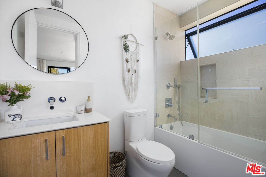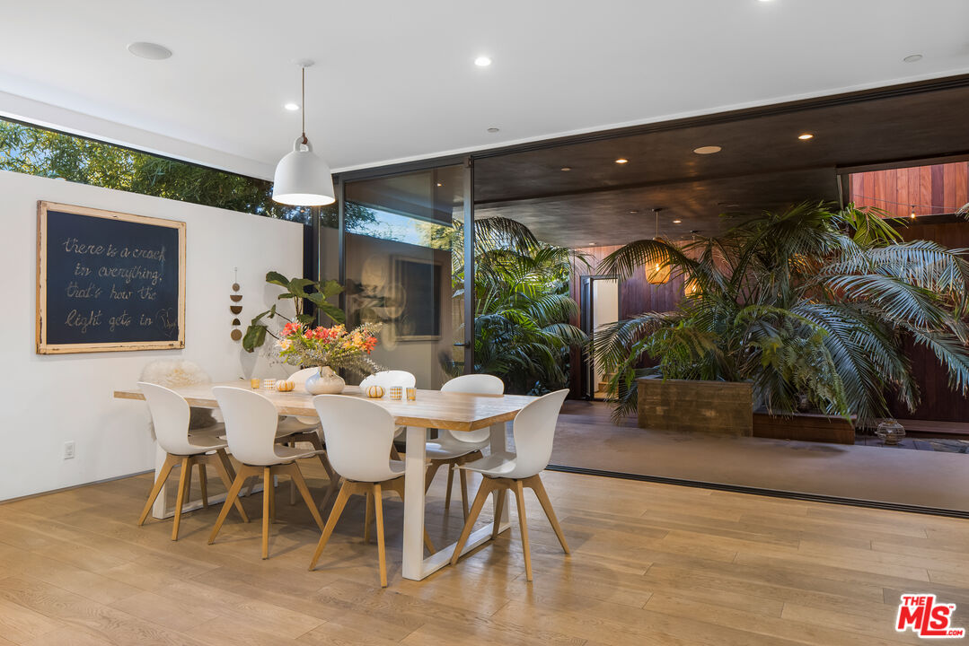 660 Sunset Ave is an architectural haven where thoughtful design meets modern luxury. This 4 bedroom, 5 bathroom home is a showcase of refined simplicity, combining clean lines, natural materials, and seamless indoor-outdoor living to create a tranquil retreat in the heart of one of the most desirable sections of Venice. The exterior, a harmonious blend of steel, wood, and stucco, welcomes you into an expansive open living area, with generous light pouring in through large windows. The beautifully designed living room features wide-plank oak hardwood floors and a striking, minimalist fireplace that serves as the perfect focal point. The chef's kitchen is outfitted with sleek cabinetry, Viking appliances, and a large waterfall island, and effortlessly flows into the dining area, where a wall of glass opens up to the lush courtyard. Here, a tranquil garden space becomes an extension of the home, ideal for dinner parties around the built-in outdoor kitchen. The second floor features a dramatic gallery-style hallway, illuminated by skylights. A bridge-like passageway, with a cozy sitting area and fireplace, connects the main house to a spacious studio loft, complete with a private bathroom and terrace--a perfect retreat for creative work or visiting guests. All bedrooms are on the second level, including the elegant primary suite, featuring vaulted ceilings and a luxurious bathroom with a soaking tub. Above it all, a spacious rooftop deck awaits, offering sweeping views of the sunset. This property captures the essence of Venice living, with its unique design and enviable location just moments from Abbot Kinney Blvd, Rose Ave, and the beach.Interested in this Listing?
