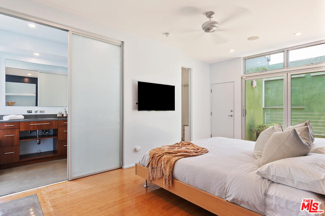 This stunning home is located in the heart of Venice and features two beautifully designed structures connected by a bridge, creating a unique and modern living experience. The main house boasts a sunken living room, a spacious kitchen and dining area with sliding doors that open to a private courtyard, providing a seamless indoor-outdoor flow and offering a perfect area for entertaining. The upstairs is home to a generous primary bedroom suite, complete with a large bathroom featuring a bathtub and separate shower. Connecting the two structures, a sky walkway offers a distinctive transition from the main house and leads to a second bedroom and office that could also function as an additional bedroom providing plenty of space and flexibility for your lifestyle needs. Additionally, this thoughtfully designed home by David Hertz AIA, who is known for his sustainable architecture, includes a rooftop deck offering breathtaking views of Venice. Enjoy the cozy fireplace, hot tub, and outdoor shower, all of which create a fun outdoor living space you'll never want to leave. An elevator provides easy access to the multiple levels, making it convenient to move between spaces with ease. Additional features include bamboo and polished concrete floors throughout, and a two-car garage with an electric plug in. With its prime location near the famous Abbot Kinney, trendy shops and restaurants are just a few blocks away. The beach is also within close proximity, allowing you to enjoy the best of what Venice has to offer.Interested in this Listing?