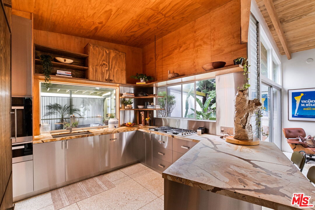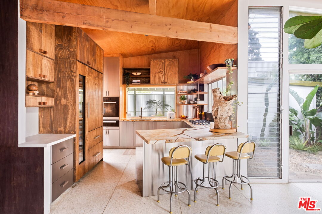 In the heart of Venice, where the streets breathe a quiet history of the sun and salt air, there sits a house - a 3-bedroom, 2-bathroom home that holds within it the layers of time and the stark elegance of a place that has learned to be both modern and timeless. It is a mid-century modern structure, remodeled with precision and care, tucked into the iconic walk streets, just steps from the rhythm of the ocean and the pulse of the city. Inside, there is light. The kind of light that comes through floor-to-ceiling windows and sliding glass doors spreads across the polished terrazzo floors in a quiet, almost unsettling way. You don't notice it at first, but it's always there, shaping the space. The wood beam vaulted ceilings stretch above, lending a kind of calm that seems both familiar and foreign in its beauty. The kitchen, a masterwork of function and design, offers a cool, clean contrast to the warm finishes of the original wood, the built-ins, and the bespoke touches that tell you someone cared. Sub-Zero refrigerators, freezers, and wine storage stand like silent sentinels, their quiet luxury punctuated by Miele and Bosch appliances. It is the kind of kitchen you would imagine a person who knows how to live would want to spend time in, not just to cook but to exist. The bedrooms are not so much spaces as they are moments soft, deliberate, and quiet. The primary suite opens onto a private patio where the air, heavy with the scent of sea salt and jasmine, moves through the room like an old friend. There is a walk-in closet that promises both privacy and possibility and the bathroom, with its spa-like serenity, will feel familiar the first time you step into it, as though it has always been yours. Outside, the gardens have been designed with care, lush yet low-maintenance, a reflection of the delicate balance between the land and the people who live on it. Walkways curve with purpose, leading you through this little oasis, a place where thoughts can rest. Then there is the auxiliary building detached, finished, and ready for whatever you decide to make of it. It could be a studio, an office, or a place to lose yourself for hours in whatever it is you are searching for. It's a space that allows for possibility. You are steps away from the ocean, from the grit and glamour of Venice Beach, from dining, shopping, culture, and everything Los Angeles has to offer. This is a place where design meets history, where function meets beauty, where the past and present come together in the quiet, insistent way that only Venice can offer. This home rare, extraordinary, and simple in its perfection is a place where you can finally stop searching. It is waiting for you.Interested in this Listing?