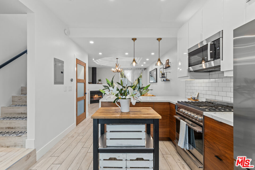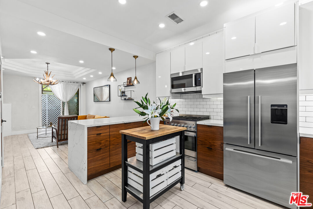 Step into sophisticated coastal living in the heart of Venice, on the world-famous Abbot Kinney Blvd. This meticulously remodeled luxury 2-bedroom, 2.5-bath condo blends modern design with effortless California cool-- just moments from the beach, top-tier dining, and boutique shopping. Inside, you'll find an open-concept layout drenched in natural light, complemented by updated recessed warm LED Lutron lighting throughout, creating an inviting ambiance day or night. The chef's kitchen has been fully remodeled with custom grain-matched walnut cabinetry, quartz waterfall countertops, and high-end stainless Bosch and Fisher & Paykel appliances-- perfectly suited for both quiet mornings and stylish entertaining. Upstairs, discover two spacious bedrooms and two fully remodeled bathrooms featuring spa-like finishes, premium tile work, and elegant fixtures. Each bedroom is equipped with high-end MinkaAire ceiling fans, and sliding mirrored closets that are fully finished to maximize storage. A refined powder room downstairs completes the updated interior with convenience and flair. Enjoy your morning coffee or evening wine on the private patio, a tranquil retreat amidst Venice's vibrant energy. Located in the highly regarded Coeur d'Alene Avenue Elementary School District, this is luxury living with an edge: contemporary, curated, and connected to the best of the Westside.Interested in this Listing?