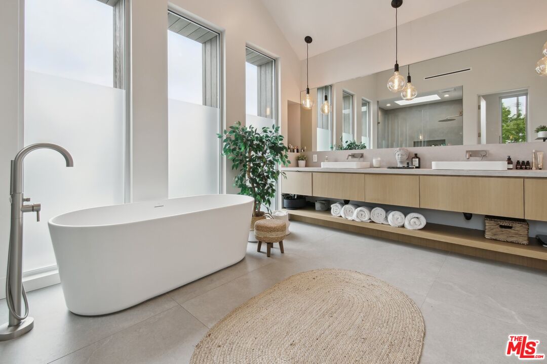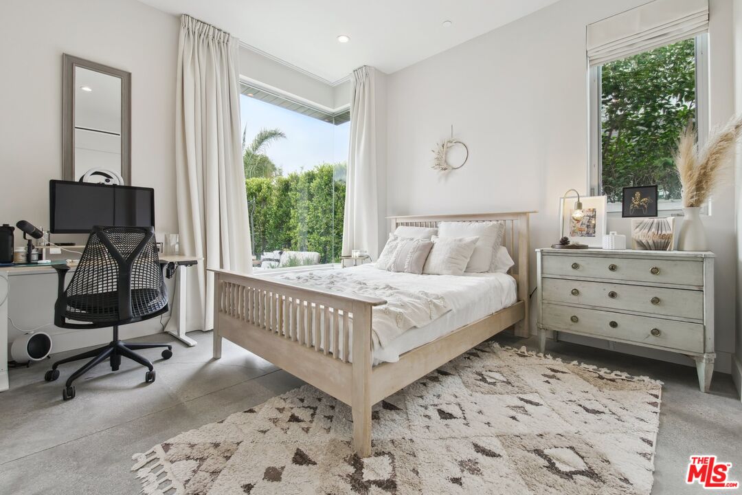Experience the epitome of Venice living in this luxury 4 bedroom + office, 4.5 bathroom residence that masterfully balances sophisticated design with Southern California's coveted indoor-outdoor lifestyle. Tucked behind private hedges, this fully furnished architectural gem creates an immediate sense of arrival with its thoughtful fire pit gathering area and elegant front yard. The entry unfolds into an open, sun-drenched space, where soaring ceilings and concrete floors establish the home's modern aesthetic. Recessed lighting and an integrated Sonos sound system extend throughout the interior and into the backyard, transforming ordinary moments into memorable experiences. To the left of the entryway, you'll discover a spacious bedroom featuring a frameless corner window and an en-suite bathroom with a rainfall shower. Situated next to the first bedroom is a powder room- convenient for guests and daily living. The heart of the home is the open-concept living area with light oak ceilings and Fleetwood pocket doors that seamlessly connect to the backyard oasis. A striking fireplace anchors the space while a dining area with a round table sets the scene for lively dinner parties or intimate meals with loved ones. The beautifully designed kitchen is a chef's dream with a custom refrigerator that blends into a wall of built-in cabinets and pantry storage. Floating wooden shelves with under cabinet lighting illuminate the quartz countertops while a Bertazzoni range with dual ovens provides professional-grade functionality. An oversized kitchen island expands the counter space while adding bar seating, ideal for everything from morning coffee to evening cocktails. The backyard is an entertainer's dream, where a heated pool and spa serve as the centerpiece. This outdoor space features built-in cabinetry, a refrigerator, and a dining area with overhead string lighting - perfect for dining al fresco. The second level, unified by light oak flooring, reveals the impressive primary suite, where cathedral ceilings and a cozy fireplace create an intimate retreat. Pocket doors open to a balcony overlooking neighborhood treetops, while a generously sized walk-in closet provides optimal storage space. A rejuvenating en-suite bathroom completes the primary suite, featuring a soaking tub and an oversized shower, complemented by dual vanities, tiled flooring, and a skylight that welcomes abundant natural light. Continue through the hallway to discover two additional bedrooms, each with private en-suite bathrooms. Completing the second level is a bright and airy office and a dedicated laundry room, equipped with a washer and dryer. Additional amenities include an alarm system, central AC and heating, and gated, single-car parking complemented by abundant street parking. With the very best of Venice within reach, enjoy an afternoon game of tennis or experience the popular "Sunset Sessions" at Penmar Golf Course. Enjoy nearby chic cafes and trendy restaurants like Superba, Companion, and Zinque, while benefiting from proximity to everyday conveniences like Whole Foods, Erewhon, and the shops and restaurants that line Lincoln and Abbot Kinney. Ideally situated in Venice's most desirable pocket, this stunning property provides an intimate retreat and immediate access to the vibrant energy of the Westside.Interested in this Listing?