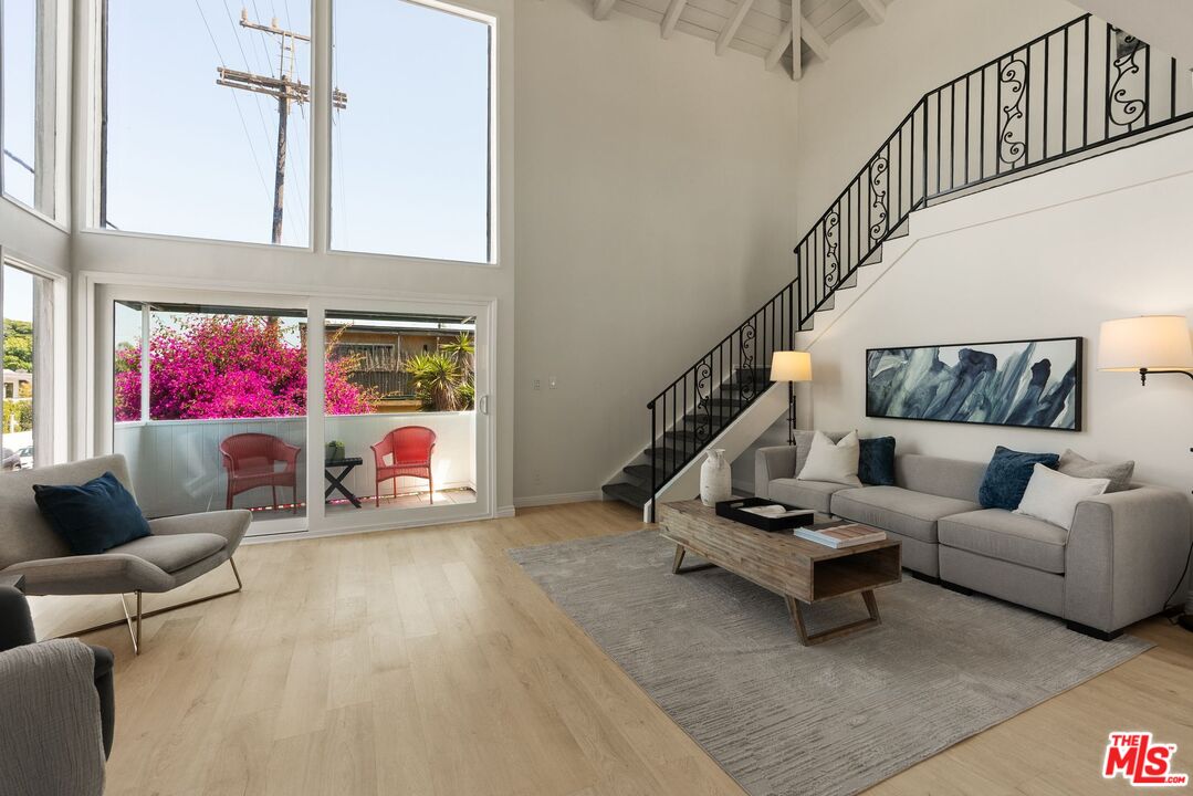 OPEN SUN 6/22 1-3pm Sun-filled top floor 3 bedroom loft w/dramatic 25 ft ceilings & huge roof deck w/ocean, city & mountain views. Soaring ceilings in sun-filled living room w/fireplace & south-facing balcony. Beautiful light grey oak vinyl floors, open kitchen/dining room w/white quartz counters, new stainless appliances. Large shared patio draped in bougainvillea with direct access to walk street & world famous Venice Beach. Spacious master bedroom on main level w/balcony & huge walk-in closet. 2nd bedroom on main level & hall bath w/tub/shower. Upper loft bedroom with direct access to roofdeck. Largest unit in 3-unit small building on prime walk street. Covered tandem parking for 2 cars. Incredible Venice location just steps to the beach, bike path & Marina shops & cafes. This is a hipster/surfer/sun-worshipper paradise on prime walk street next to Silicon Beach. A rare opportunity to live at the beach with a view!Interested in this Listing?