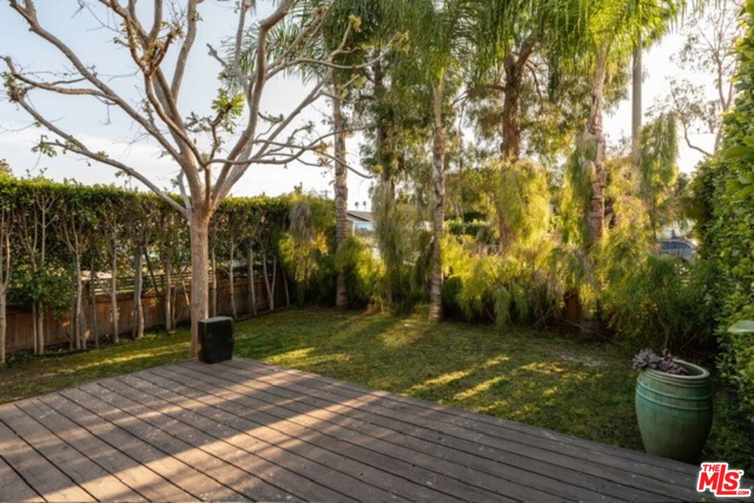 Located in a prime, east of Lincoln, Venice location, this incredibly private and serene 3BR/2BA home blends charm, natural light, and livability in one of the area's most sought-after neighborhoods. Freshly painted and featuring hardwood floors throughout, including newly added wood flooring in the back two bedrooms, this home is move-in ready and full of warmth. Step inside to a bright, open floor plan with a spacious living and dining area that flows seamlessly to an expansive front deck and landscaped front yard, perfect for both entertaining and everyday enjoyment. The updated kitchen is light and airy, featuring Corian countertops and stainless steel appliances. The generous primary suite is filled with natural light and features French doors that open directly to the backyard. The third bedroom also opens to the outdoor space, making it an ideal home office, guest room or den. Other features include: Updated bathrooms, a dedicated laundry room with a brand-new washer and dryer, new window coverings and extra storage. The backyard is exceptionally private, a true retreat complete with mature landscaping, a large deck for lounging or dining, and a fire pit. Peaceful and inviting, it's the ultimate setting for indoor/outdoor living. Don't miss this rare gem on one of Venice's most beautiful and quiet streets. Available immediately and priced to move.