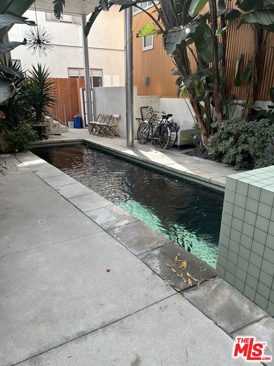 Charming garden apartment remodeled in 2022 with expansive ceilings and flooding light throughout the home. Beautiful hardwood flooring, granite countertops & stainless kitchen, 1 parking spaces, (private gated driveway), lap pool w/waterfall (shared with occupants of 3 adjacent modern lofts), private landscaped patio area, security system, washer & dryer, and custom closets in bedrooms. Fabulous relaxing retreat with quiet surroundings...Interested in this Listing?