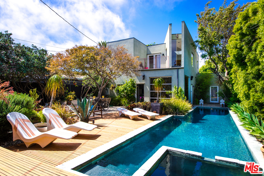 Stunning Contemporary Venice Compound With Pool! Cleverly designed by Architect, Mulder Katkov, this simple yet brilliant design commands an industrial minimalist aesthetic, while still encompassing both warmth and comfort. The main living space is comprised of a metal-framed roll-up door that opens to a little oasis: very private and spacious yard with large pool, jacuzzi, & outdoor shower. The entire home is streams with light and has an indoor/outdoor feel. The master bedroom and bathroom suite is generous in size. Conveniently located 5 blocks from Venice Beach, this sleek and sophisticated home is located in heart of everything that makes this city attractive; Abbot Kinney, the Canals, shops, fine dining and interesting galleries. Don't miss this opportunity to live in a masterpiece of profound simplicity!