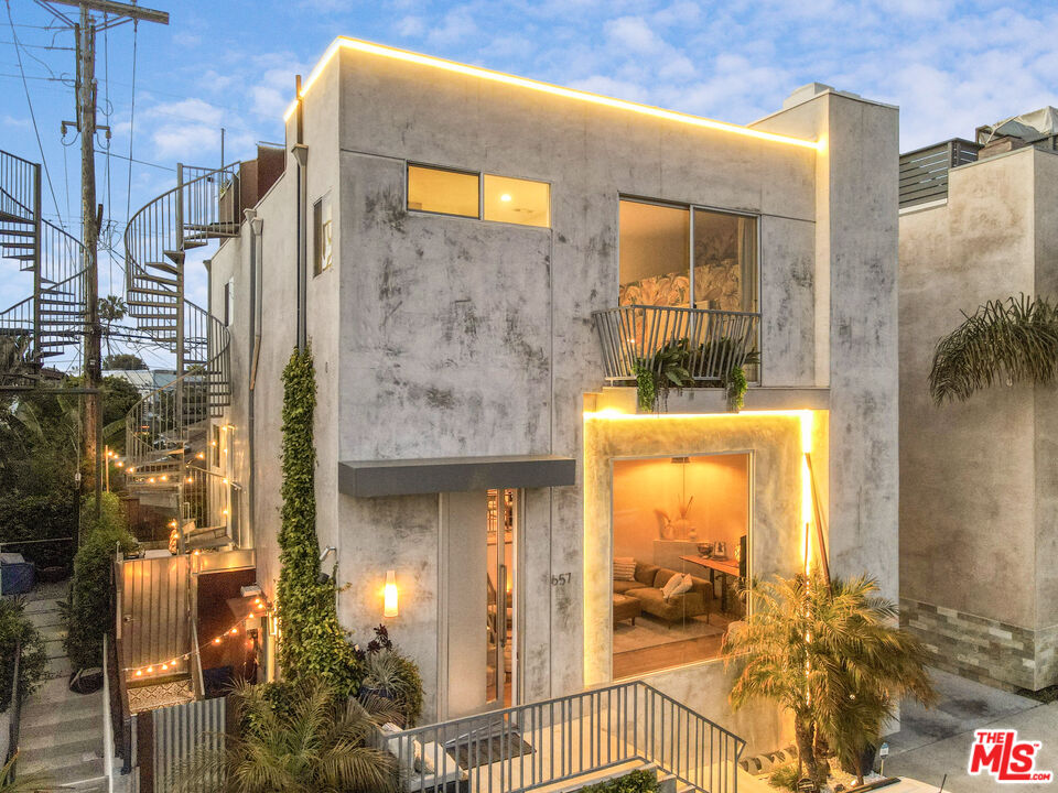 Nestled in the heart of Venice Beach's exclusive Silver Triangle neighborhood, this stunning contemporary singe family home + bonus living space offers the ultimate coastal lifestyle, just a moments stroll to the Venice Canals, Abbot Kinney, the Marina, and Venice Beach. Remodeled in 2025, this turn-key residence blends modern elegance and sophistication, with a relaxed, beachy vibe. The main house boasts a light-filled, open-concept design with vaulted ceilings, and floor-to-ceiling windows that welcome an abundance of natural light. Featuring polished designer concrete, bamboo wood flooring, and custom wool stair runners, the thoughtfully designed layout spans multiple levels, offering an airy loft-like feel. The sleek, modern kitchen, remodeled in 2025, flows seamlessly into the spacious dining and living areas, perfect for entertaining, with a cozy fireplace. The expansive primary suite includes a luxurious en-suite bathroom with an oversized shower and tub, his & hers walk in closets, and an additional fireplace. A spiral staircase leads to the highlight of the home--an incredible fully finished rooftop deck with breathtaking panoramic city views, a peek of the ocean, and plenty of space for lounging, dining, and enjoying Venice's iconic sunsets (a new roof was added 2024). The outdoor space includes a hot outdoor shower, and a cozy garden with a gas BBQ. In total the home includes 4 bedroom, 3 full baths, and 2 half baths. This versatile property is currently configured to offer a 1 bedroom, 1.5 bath separated portion of the home, with its own entrance, and has an additional 400 SF of functional living space inclusive of a second kitchen. Whether used as a private in-law suite, a home office, a rental opportunity, a media room, or simply as an expansion of the main living area, this space offers incredible flexibility to fit a variety of lifestyles. Situated in a quiet residential enclave just four blocks from the sand, this home offers the perfect balance of tranquility and walkability, yet with all of the vibrancy of Venice minutes away- walk to the Venice Canals, Abbott Kinney, the beach, and all the Marina has to offer. World-class dining, shopping, and entertainment are all at your fingertips. Also available for sale - contact LA 1 for more information.Interested in this Listing?