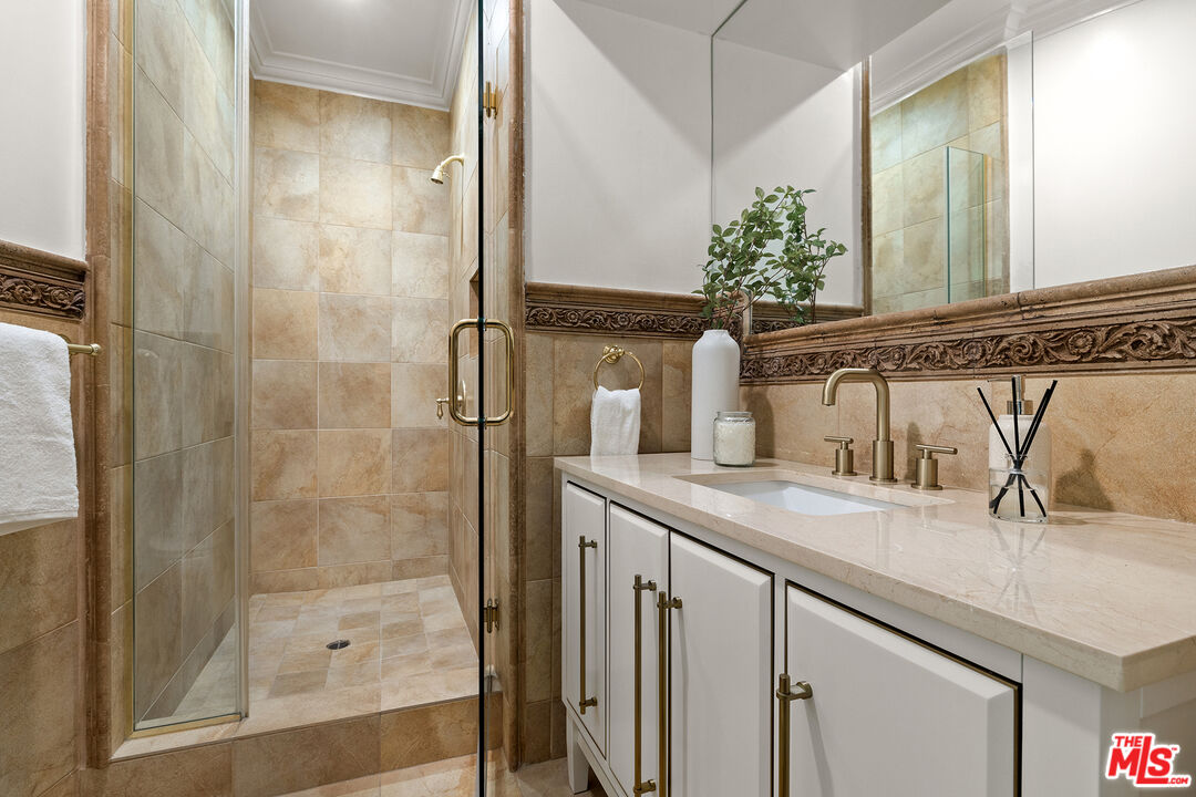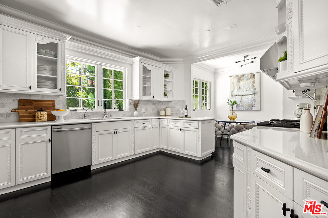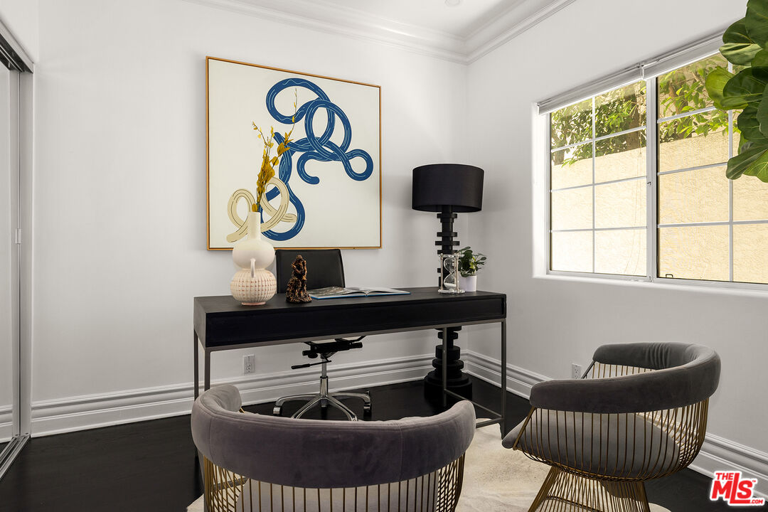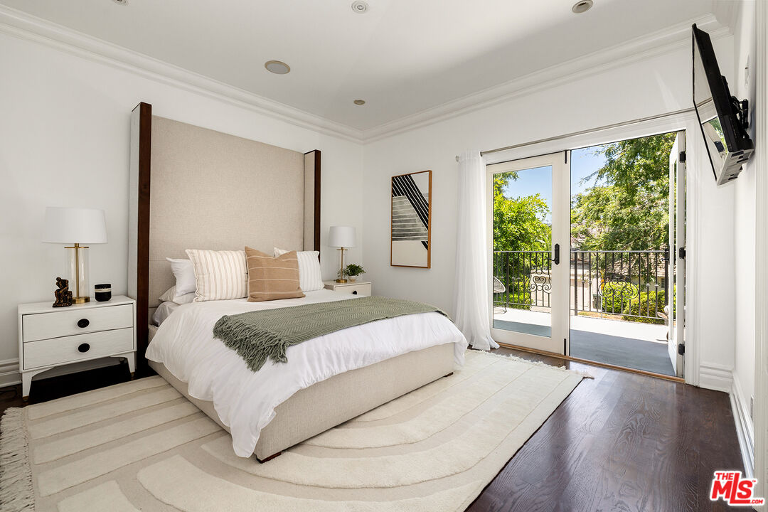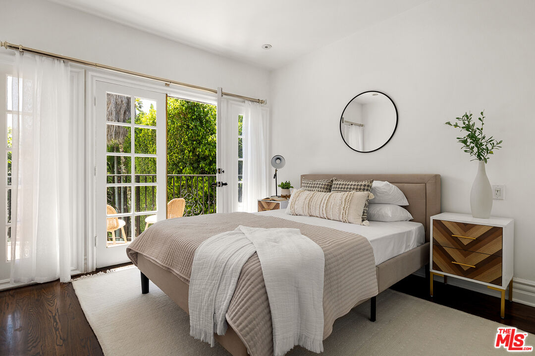An ode to modern elegance on one of West Hollywood's LARGEST residential lots situated in a highly desirable neighborhood south of Melrose and near the city's most coveted eateries, luxury shopping, and fitness destinations. Behind its gates, this exquisite home features a beautifully crafted curved staircase and two expansive living areas with soaring high ceilings and meticulously detailed Parisian moldings, creating a timeless and sophisticated ambiance. The gourmet kitchen offers plenty of space for culinary creations and casual dining, while the formal dining room is made for entertaining guests for all occasions. With 1 bedroom conveniently located on the ground floor and 4 bedrooms upstairs, this home is perfect for accommodating friends and family, or working from home. The exceptionally large front and back yards feature ideal areas for relaxation + entertaining and the perfectly positioned pool + spa is a dream for enjoying California's fabulous weather year-round. Additional key features include: spacious closets, 3 fireplaces, large balconies, attached garage, and more. An opportunity not to be missed.Interested in this Listing?