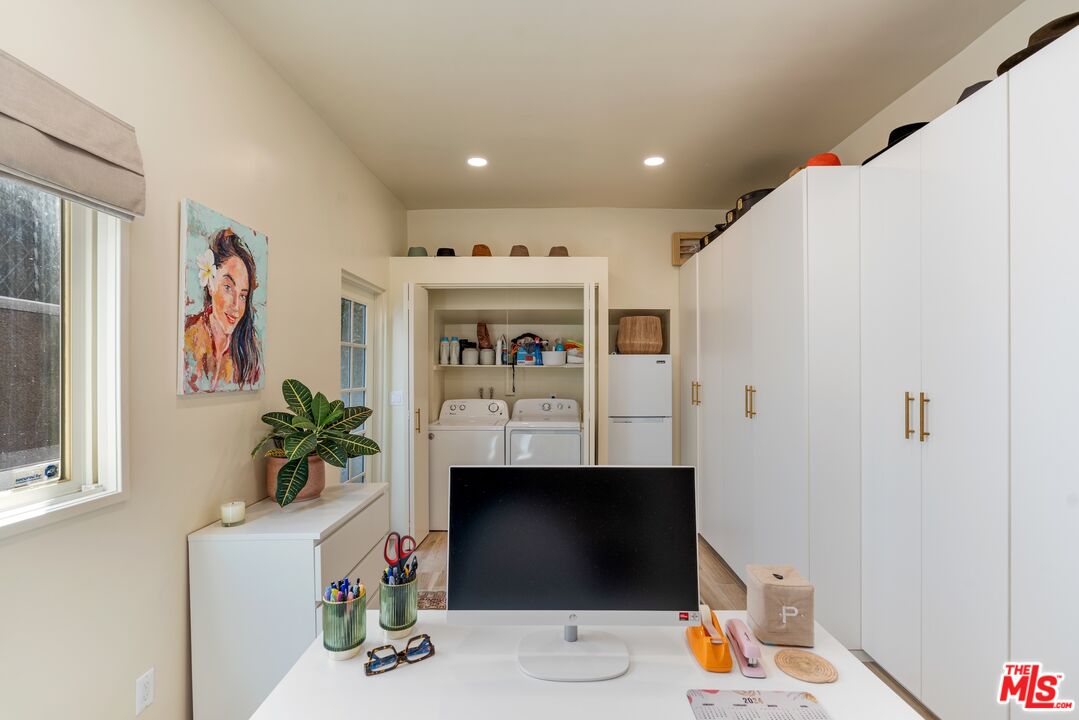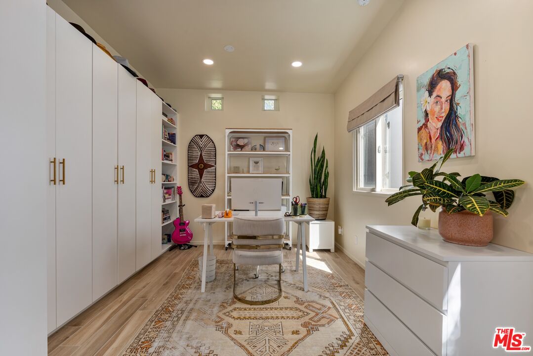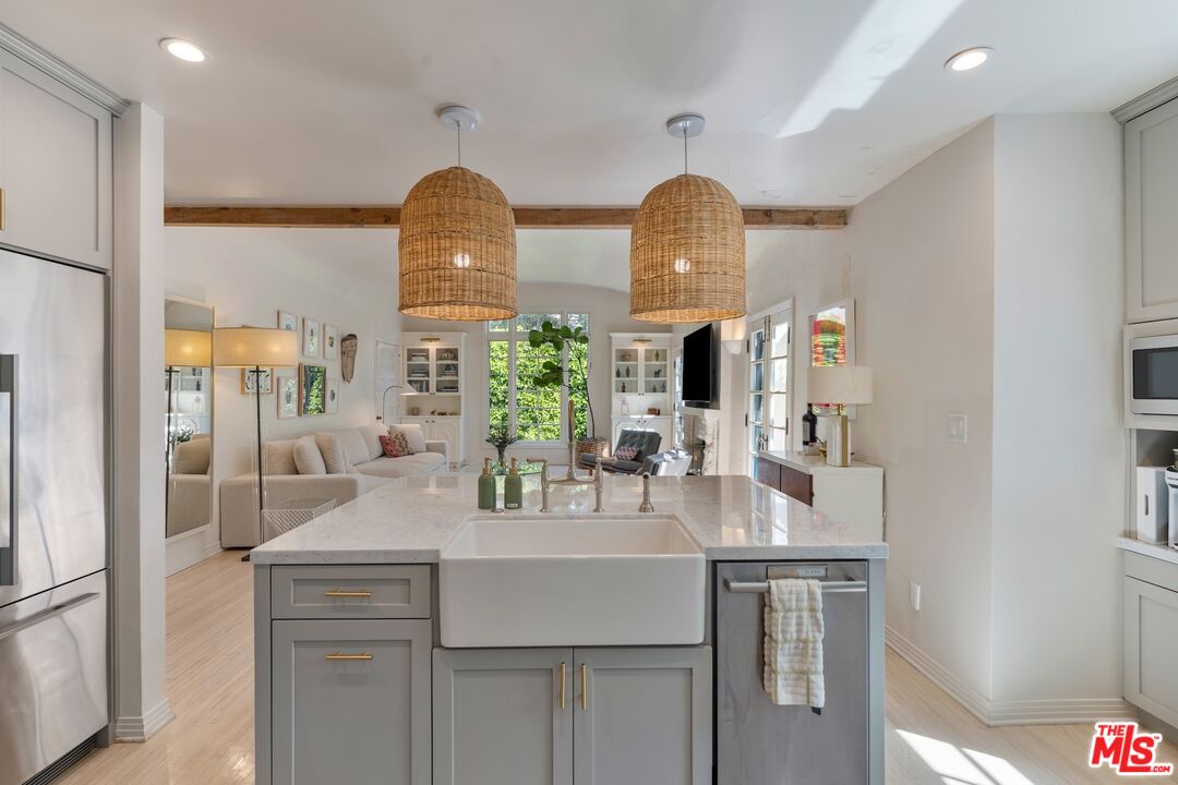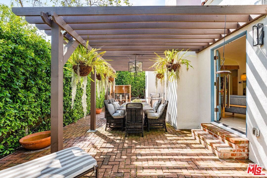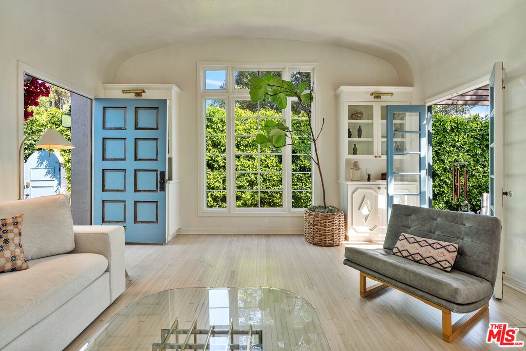 Casa Willy - Nestled in a prime West Hollywood location, this beautifully restored 2-bedroom, 2-bathroom 1923 Spanish home blends timeless charm with modern sophistication. From the moment you enter through the romantic gated brick courtyard, you feel the tranquility and privacy provided by towering hedges and lush landscaping. Step inside to sun-drenched interiors, where numerous French doors and leaded glass windows flood the space with natural light. The living room, with its dramatic barrel-vaulted ceiling, opens to the remodeled kitchen, featuring a large center island, pro-style appliances, and designer cabinetry. Gorgeous bleached oak wood floors flow throughout, adding warmth and style. The home's two bedrooms offer a serene retreat, while both bathrooms showcase quality craftsmanship and thoughtful design. Outside, a charming pergola frames an intimate outdoor dining area perfect for al fresco evenings. The detached garage has been elegantly converted into a home office or creative studio, and a long gated driveway provides off-street parking. All of this, just blocks away from West Hollywood's most exciting retail, restaurants, and nightlife. Converted office/studio square footage is in addition to the square footage reflected at the assessor.Interested in this Listing?