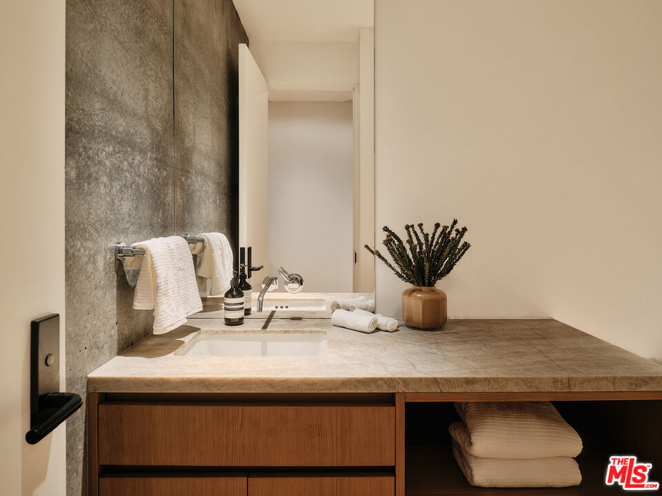 Concrete House. Olson Kundig. This remarkable residence is part of an exclusive collection of eight signature homes designed by the world-renowned Olson Kundig, each offering a distinct material palette and a truly unique living experience. A bold architectural statement in the heart of West Hollywood, Concrete House embraces the Olson Kundig ethos of raw materiality, innovative design, and seamless indoor-outdoor living. Spanning 2,962 square feet, the home features three bedrooms and three-and-a-half bathrooms, offering a dynamic and flexible living experience. The panel-formed, site-cast concrete exterior, complemented by exposed structural steel, creates a striking yet refined presence, while expansive glass openings flood the interiors with natural light. A grand double-height entry frames the architectural staircase and concrete wall. The living area features an inviting fireplace that enhances warmth and openness. The chef's kitchen, outfitted with Miele and Gaggenau appliances and custom cabinetry, serves as a hub for both culinary excellence and effortless entertaining. Multi-panel operable doors connect the front living and rear dining areas to a private outdoor sanctuary, where a serene pool, and spa offer a retreat of unparalleled tranquility. As part of Olson Kundig's visionary development at 8899 Beverly Boulevard, hailed as a "Love Letter to Los Angeles", homeowners have access to 24-hour concierge services, a state-of-the-art fitness center, and a lushly landscaped oasis featuring a resort-style pool, spa, custom outdoor kitchen, and the acclaimed on-site restaurant, Stella.Interested in this Listing?