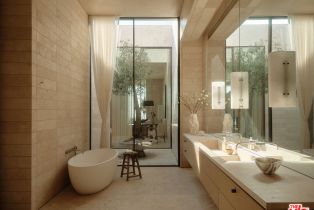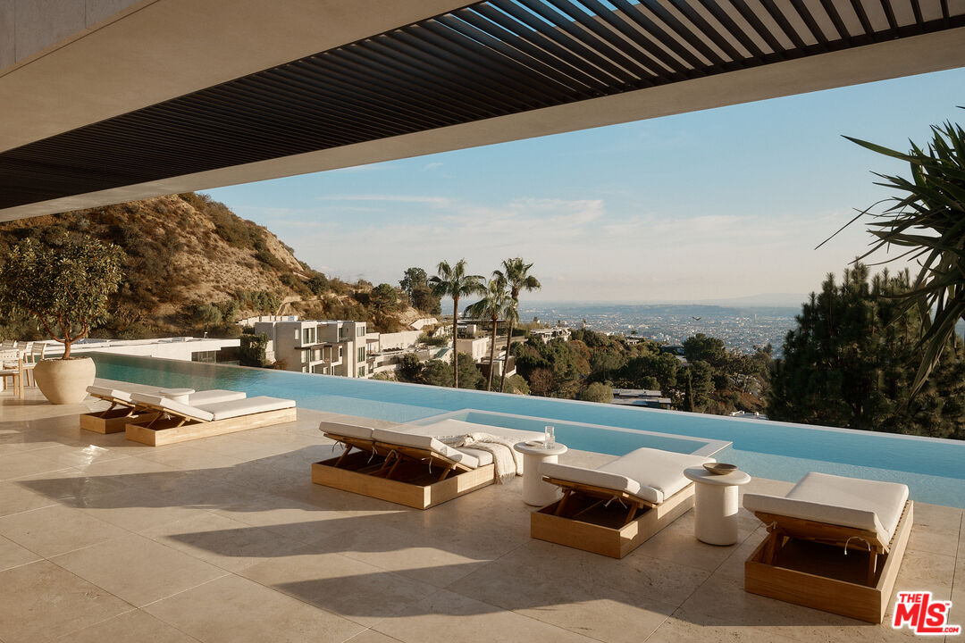 Designed by the internationally acclaimed architectural firm Woods + Dangaran, this extraordinary estate commands unparalleled 280 southern views, spanning from the glittering Los Angeles skyline to the vast expanse of the Pacific Ocean. Crafted with 200 tons of hand-selected Turkish Travertine, the residence is a masterpiece of modern design, where floor-to-ceiling glass panels and White Oak accents invite abundant natural light, creating an atmosphere of warmth and sophistication. At the heart of the home, a state-of-the-art chef's kitchen outfitted with Gaggenau and Sub-Zero appliances, seamlessly integrates with the exquisitely designed formal dining room and living space, both of which open to the 115-foot infinity pool that spans the length of the estate, offering an unparalleled setting for entertainment and relaxation. The primary suite is a private sanctuary, evoking a spa-like retreat with a soaking tub, expansive custom closets, and a secluded atrium, ensuring tranquility and refinement. A striking two-story glass enclosure houses a 35-foot Jacaranda tree, serving as the estate's living centerpiece - a breathtaking fusion of architecture and nature. Designed for unrivaled luxury and wellness, the estate boasts an array of premier amenities, including a private theater, gym, spa, wine cellar, and lounge. Advanced Delos Super V air purification technology ensures an environment of pristine air quality, capturing and reducing ultrafine particles to promote health and well-being. Every element of this estate has been meticulously curated to redefine luxury living, where form, function, and artistry converge to create an unparalleled residential experience. Nightingale is not just a home but a sanctuary of sophistication, serenity, and distinction.Interested in this Listing?