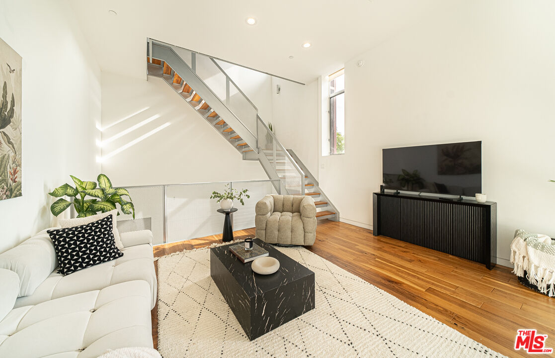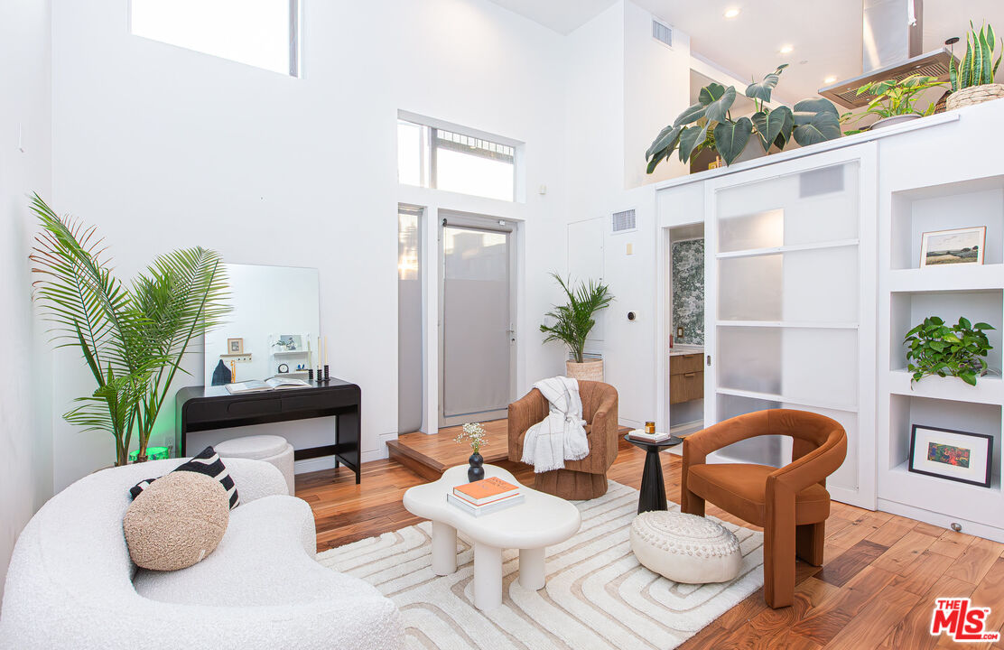 Come discover this stunning modern townhouse, a true treasure within the award-winning Lorcan O'Herlihy-designed masterpiece right in the heart of lively West Hollywood. The dramatic, sun-drenched loft-like space features multiple levels of cascading living areas with breathtaking views, including a spacious den with soaring 40-foot-high ceilings and Escher-inspired floating staircases that make every detail a work of art. This fully reimagined and updated two bedroom, four bath home occupies the entire front of the building with only one shared wall, and it's unmistakably marked by the signature style of the renowned architectThis home is a true testament to design ingenuityperfect for art collectors dreaming of a showcase space and plenty of space for entertaining. Hardwood floors run throughout, and a expansive private balcony offers indoor outdoor living with ease. Picture windows frame iconic Los Angeles cityscapes, including a jaw dropping view of the Hollywood Hills. Walk to everything, dining shops and parks all at your fingertips.Interested in this Listing?