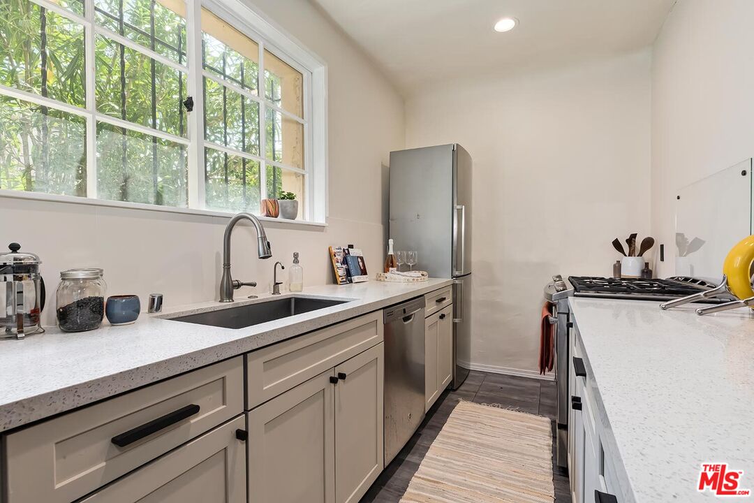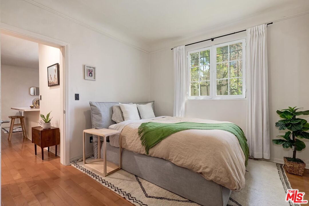 A private, secure, quiet, recently remodeled condominium in a 1929 Spanish hacienda built around a central courtyard on a beautiful tree-lined side street within walking distance to Bristol Farms, Whole Foods, and a host of restaurants. An assigned gated parking space and a separate storage unit come with this home. Hayworth Gardens is an historic Spanish architectural building featuring all the charm and glamour of late 1920s Hollywood, and you feel it the moment you enter the building foyer where you're greeted with beautiful tile work and a view to the central courtyard. Unit 1 of Hayworth Gardens is your private sanctuary. Tastefully remodeled using only the finest materials, it features an open floor plan framed by a wall of windows and ample, natural light. The large living room flows seamlesslesly to a dining area, which connects to a galley kitchen. Living spaces are placed sensibly apart from each other, with the bedroom maintaining its own section and connecting to a spacious bathroom. This home retains the original charm of its Spanish Architectural style with the function and form of modern upgrades (the apartment has undergone a complete electrical rewire). The kitchen features quartzite counters, a five-burner stove, bespoke cabinets, oil rubbed bronze pulls, electrical plates and vent covers, fresh paint, and oil-rubbed bronze hardware throughout. The stainless steel appliances are Bosch and GE. Unit 1 is located one floor down from the lobby and feels like a stand alone home. The Low Homeowner's dues cover all utilities.Interested in this Listing?